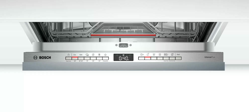 Встраиваемая посудомоечная машина Bosch SMV4HCX48E оснащен индикацией InfoLight на полу отображается красный луч, он означает, что идет процесс мытья. Home Connect позволяет управлять устройством прямо с вашего смартфона отдаленно. Система Aqua Stop полностью защищает от любых протечек.