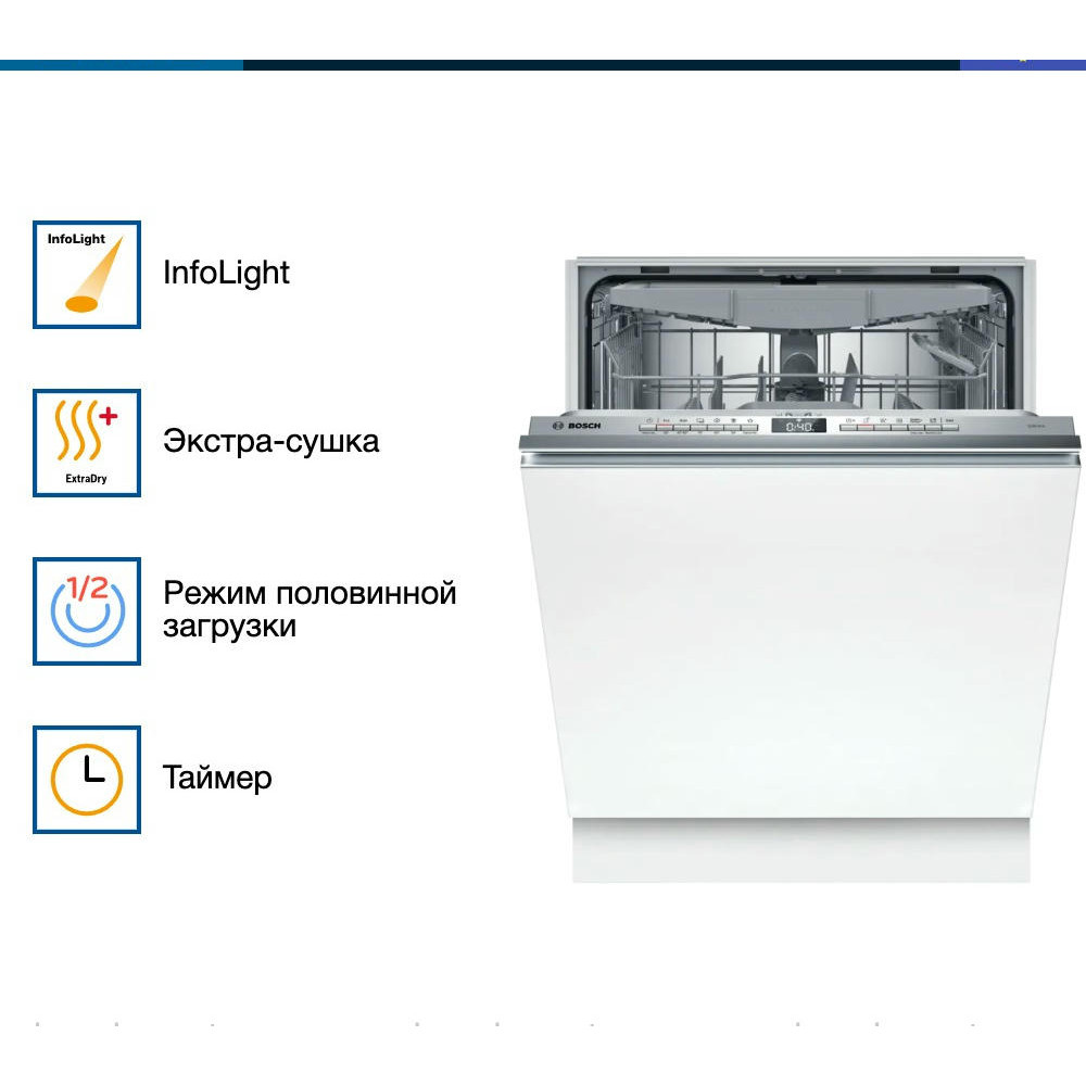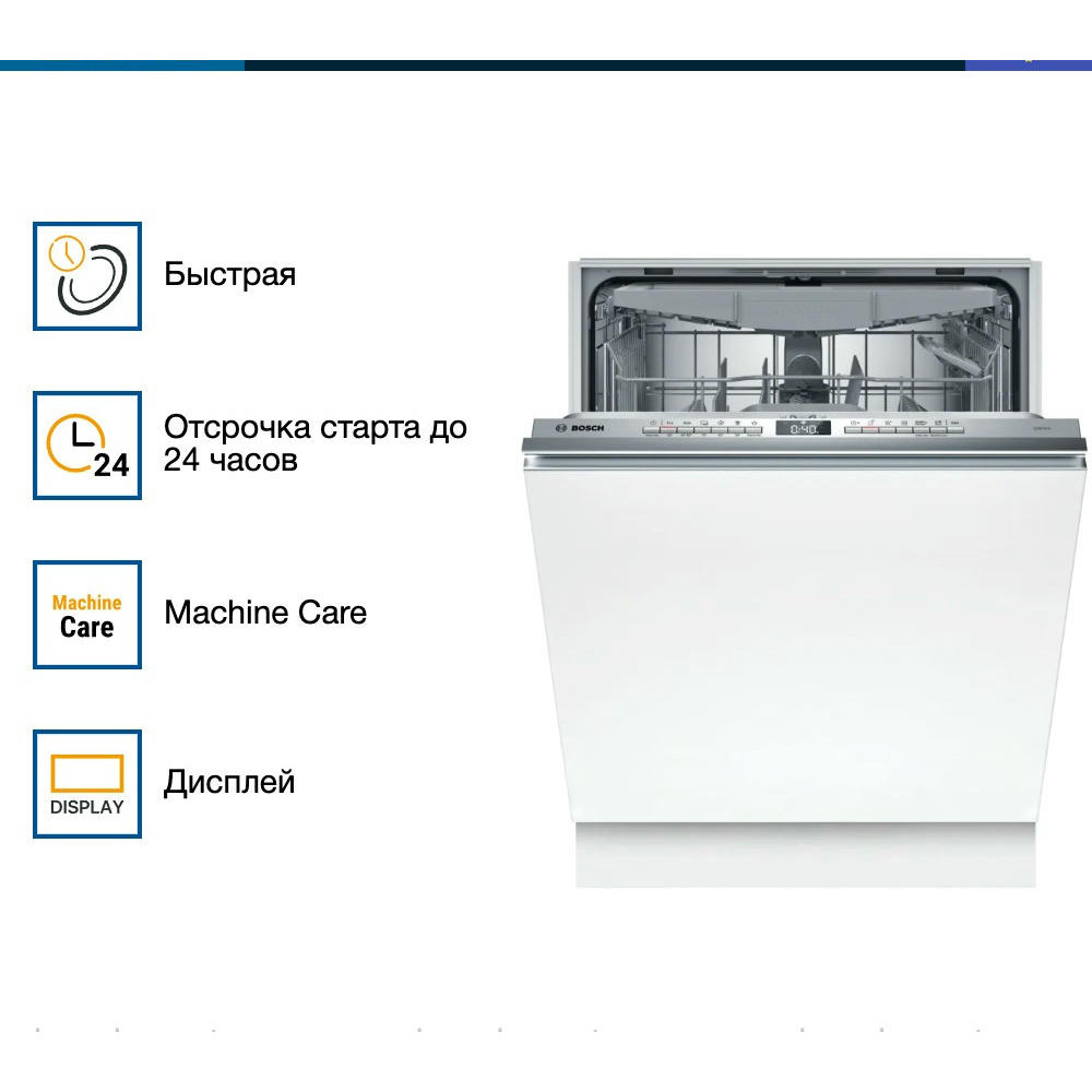 Встраиваемая посудомоечная машина Bosch SMV4HVS03E — это современное решение для тех, кто ценит комфорт, качество и стиль в своем доме. Устройство изготовлено в Евросоюзе и обладает гарантией на 12 месяцев. Представленная модель относится к серии Serie | 4, которая славится своим надежным и функциональным оборудованием. Устройство обладает широким спектром функций и особенностей, которые делают его использование максимально удобным и эффективным.