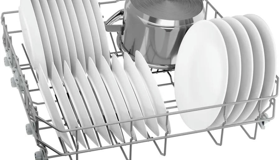 Встраиваемая посудомоечная машина Bosch SMV4HVX07E оснащена тримя корзинами, включая верхний уровень с регулировкой Rackmatic-3, позволяют быстро адаптировать положение для различных приборов и оптимизировать размещение при смене загрузки. В каждом ярусе предусмотрены складные направляющие для тарелок, две в верхней корзине и в нижней, что облегчает укладку нестандартной посуды и значительно повышает рабочую гибкость. Внутренний резервуар сочетает нержавеющую сталь и пластик, что гарантирует прочность и стойкость к воздействию моющих средств, а также сокращает вероятность коррозии; производитель подтверждает долговечность отдельной гарантией на десять лет от сквозной коррозии камеры.