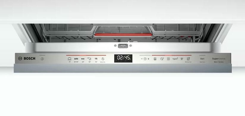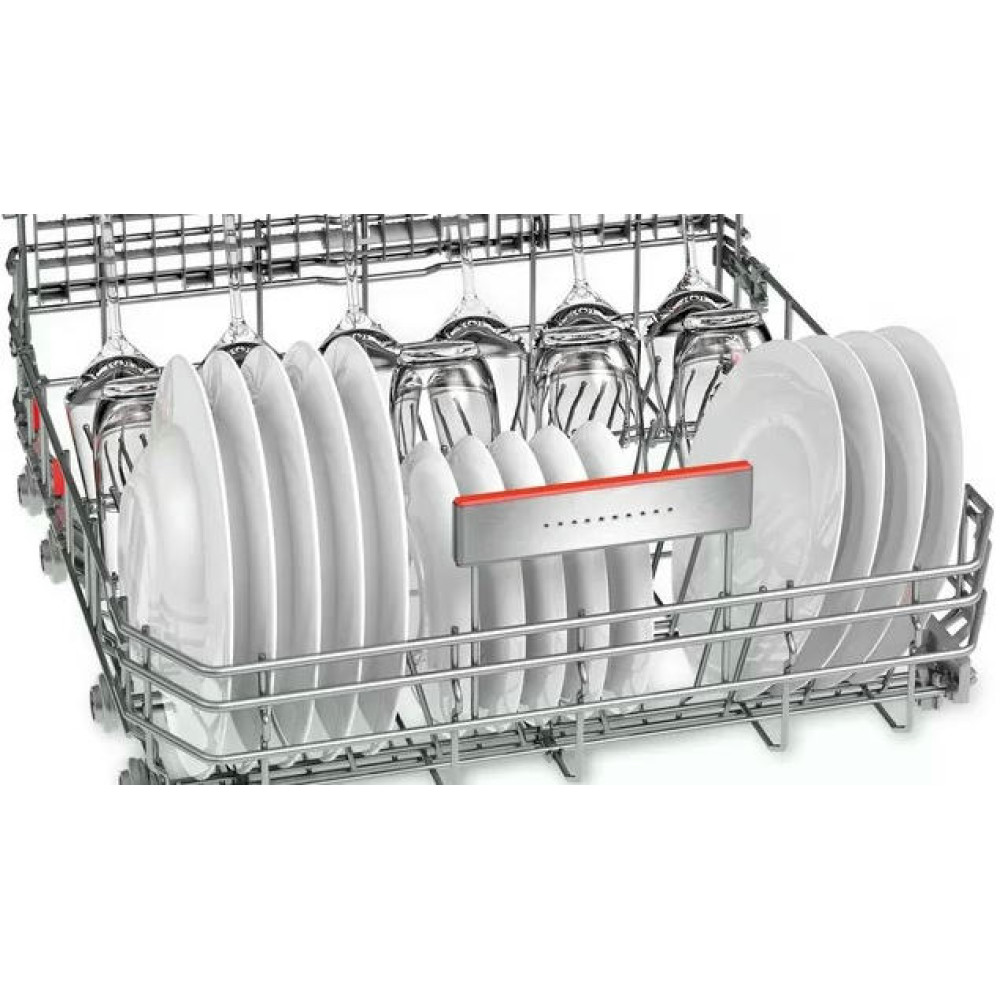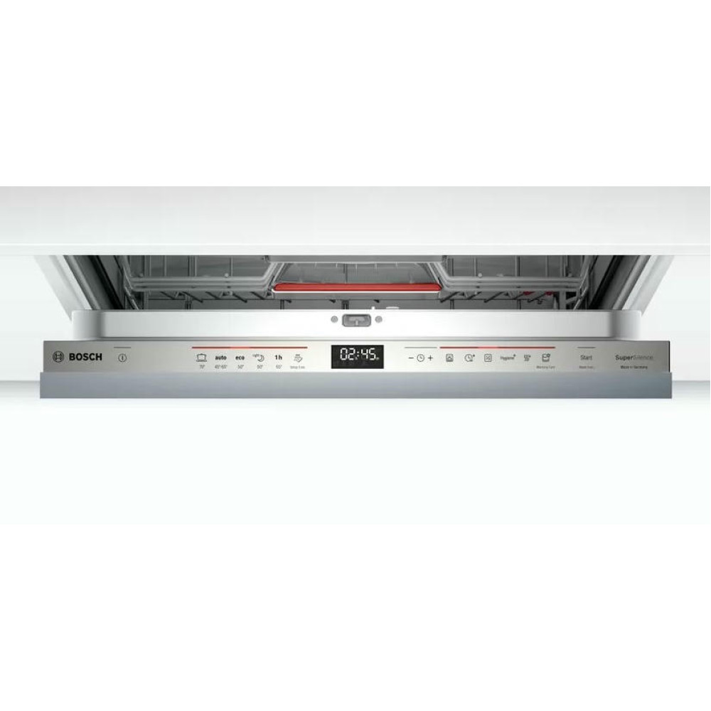 Полновстраиваемая посудомоечная машина Bosch SMV66TX01R рассчитана на большую семью и вмещает 14 комплектов посуды. Функция HygienePlus в конце мойки ополаскивает посуду водой 70 градусов. Это гарантирует уничтожение до 99% бактерий — обеззараживайте банки для консервирования, бутылочки для детского питания и другие емкости. Благодаря тому, что сушка выполняется за счет теплообменника, хрупкая стеклянная посуда будет защищена от температурного шока и не испортится. Проекция дисплея TimeLight отображает световым лучом ход выполнения программы и выбранные настройки — просто посмотрите на пол! За счет встроенного замка ServoSchloss дверь закроется сама, если угол открытия меньше 10 градусов.