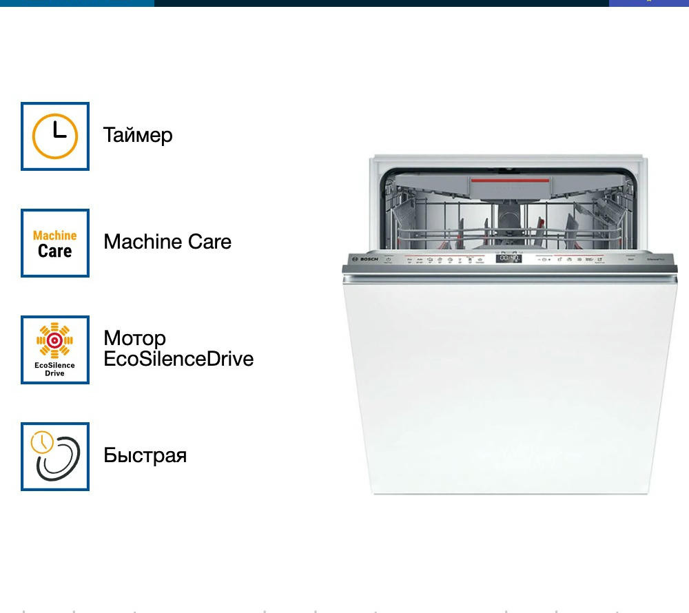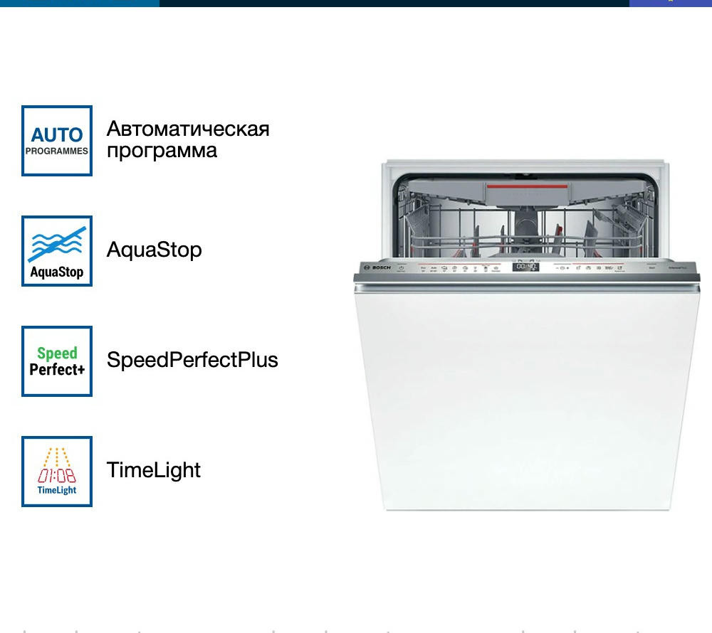 Экстра-сушка гарантирует идеально сухую посуду, а функция SpeedPerfectPlus сокращает время мойки без потери качества. Самоочистка фильтра и внутренняя подсветка облегчают уход за машиной.