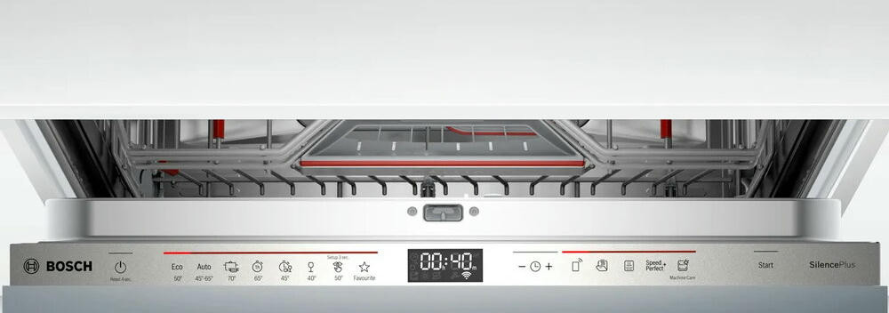 Встраиваемая посудомоечная машина Bosch SMV6ECX57E отличается утонченным дизайном и высоким качеством исполнения. Изящная панель управления, выполненная из нержавеющей стали, оснащена сенсорными кнопками и дисплеем, что обеспечивает удобство и простоту управления. Особенностью данной модели является инверторный двигатель EcoSilence Drive, который обеспечивает бесшумную и эффективную работу машины. Семь стандартных программ и семь температурных режимов позволяют выбрать оптимальные параметры для различных типов посуды. Включая автоматическую, быструю, экономичную, интенсивную, стекло, ночную и мою программу, эта модель удовлетворяет все потребности пользователя. Встраиваемая посудомоечная машина оснащена функцией самоочистки фильтра и автооткрывания дверцы, что делает ее использование еще более удобным. Сенсор чистоты воды AquaSensor контролирует качество воды в процессе работы, обеспечивая идеальную чистоту посуды. Кроме того, машина оснащена системой Home Connect, что позволяет удаленно управлять ею через приложение на смартфоне.