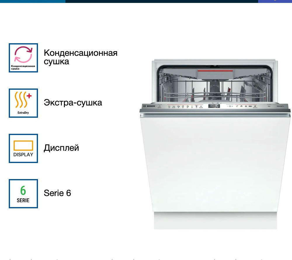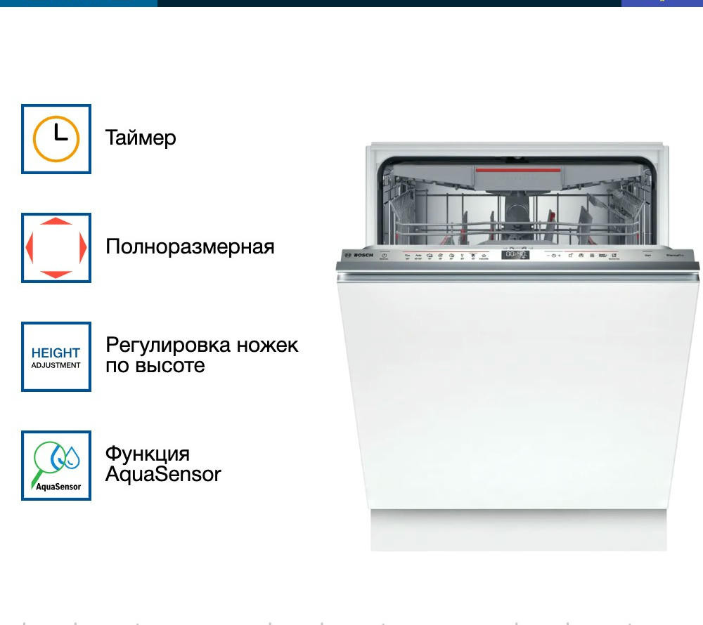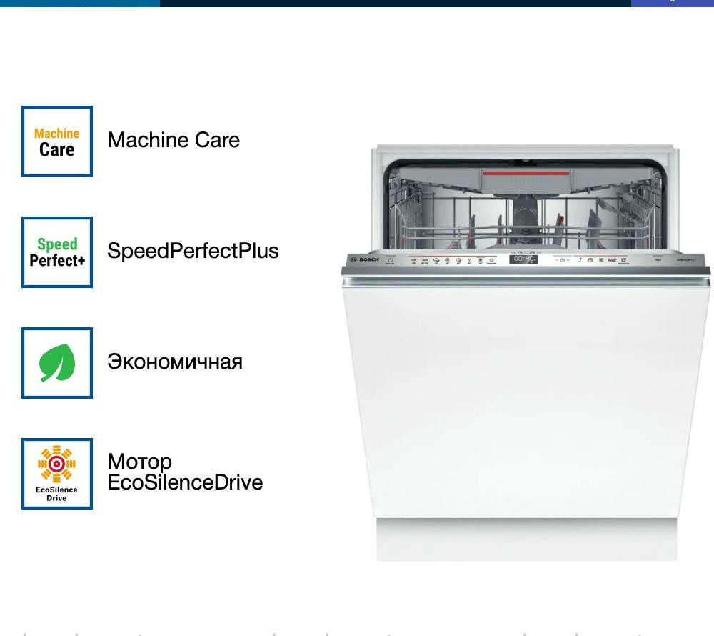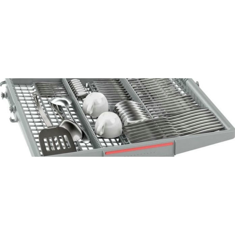 Встраиваемая посудомоечная машина Bosch SMV6ECX69E имеет тихий мотор EcoSilenceDrive. Он исключительно эффективный и гарантирует низкое потребление электроэнергии. Уровень шума всего 39 дБ, также есть Ночная программа, которая не помешает вашему чуткому сну. Благодаря выдвижному ящику VarioDrawer, загрузка в устройство посуды стала намного удобней. Вместимость — 14 комплектов. Также есть дополнительная корзина для столовых приборов. Система AquaStop, состоящая из специального подающего шланга с двойными стенками, предохранительного клапана и напольного бака с поплавковым выключателем, обеспечит полную защиту от протечек.