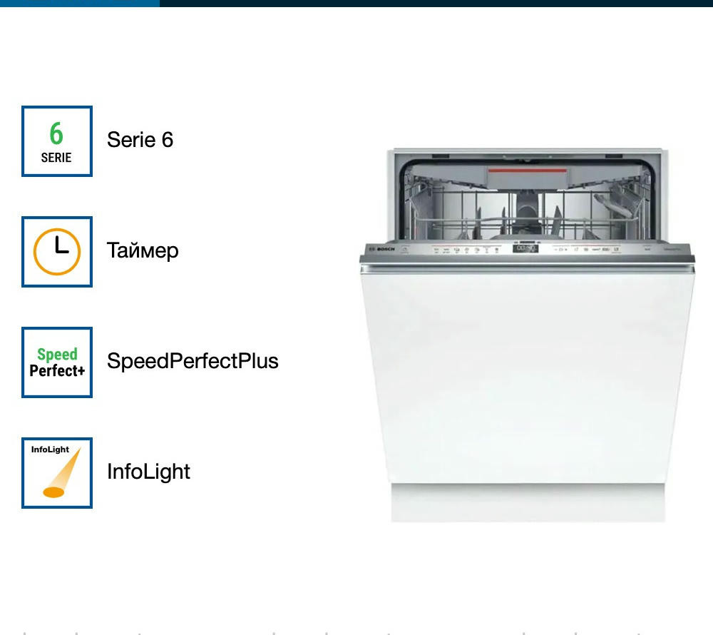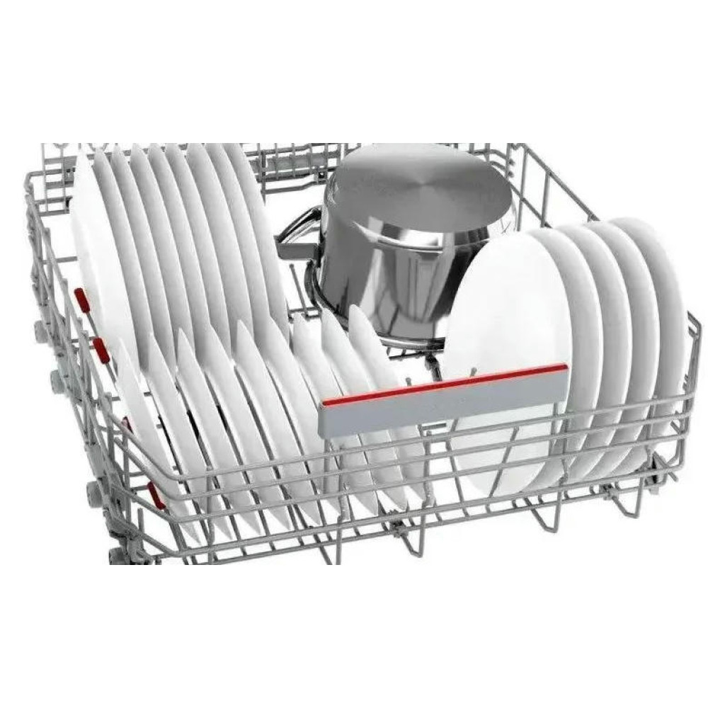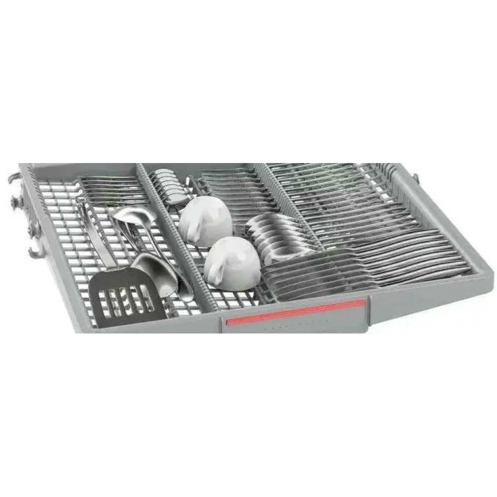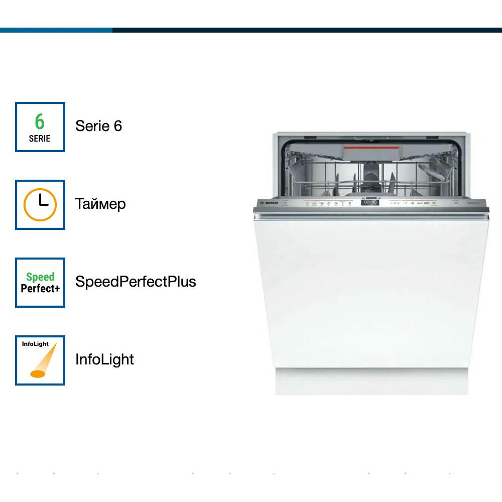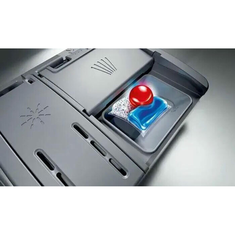 Встраиваемая посудомоечная машина Bosch SMV6EMX75Q является отличным выбором для тех, кто ценит качество, надежность и функциональность в бытовой технике. Машина полноразмерная, что позволяет загрузить до 13 комплектов посуды, что сделает ее незаменимой помощницей в большой семье или при частых приемах гостей. Она оснащена теплообменником для сушки посуды, что обеспечивает высокое качество сушки и экономию электроэнергии. Серебристая панель управления с дисплеем не только стильно смотрится, но и удобна в использовании. Семь стандартных программ мойки позволяют выбрать наиболее подходящий режим в зависимости от типа и степени загрязнения посуды. Кроме того, есть возможность удаленного запуска машины через приложение на смартфоне, что очень удобно в условиях активного ритма жизни. Встроенные индикаторы наличия ополаскивателя и соли помогают контролировать процесс мойки и обеспечивают идеальный результат.