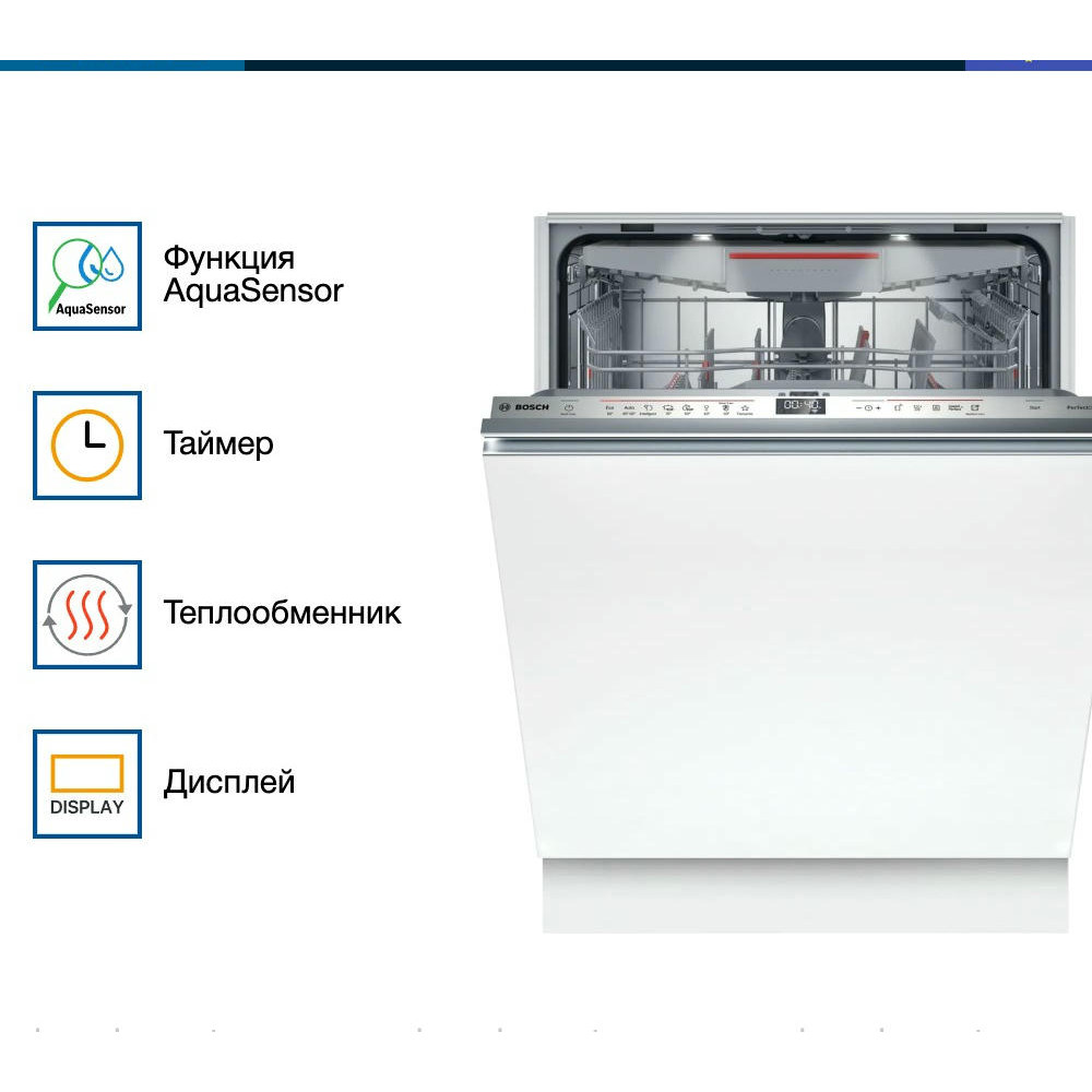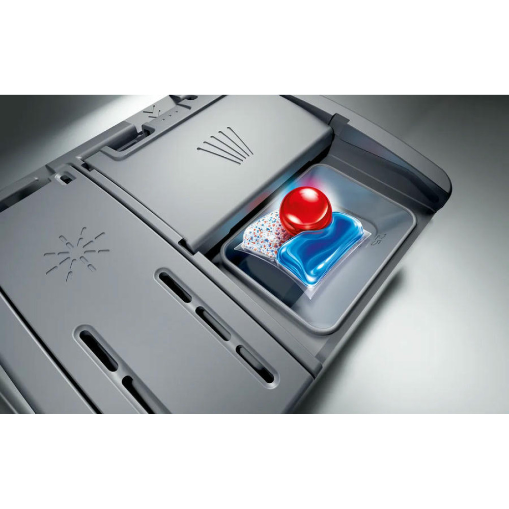 Устройство предлагает восьмь стандартных программ и шесть температурных режимов, позволяя выбрать наиболее подходящий вариант для каждого типа посуды. Среди доступных программ есть автоматическая, быстрая, экономичная, интенсивная, для стекла, ночная, моя программа, а также функции HygienePlus, IntensiveZone, SpeedPerfectPlus, Machine Care и экстра-сушка. Благодаря теплообменнику, посуда высушивается без пятен и разводов. С помощью функции Home Connect вы можете управлять посудомоечной машиной дистанционно, используя приложение на смартфоне. Это очень удобно, если вы хотите запустить машину, находясь вне дома, или если вы хотите проверить статус работы машины, не подходя к ней.