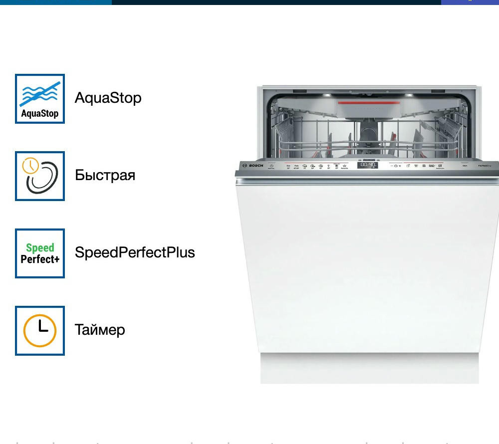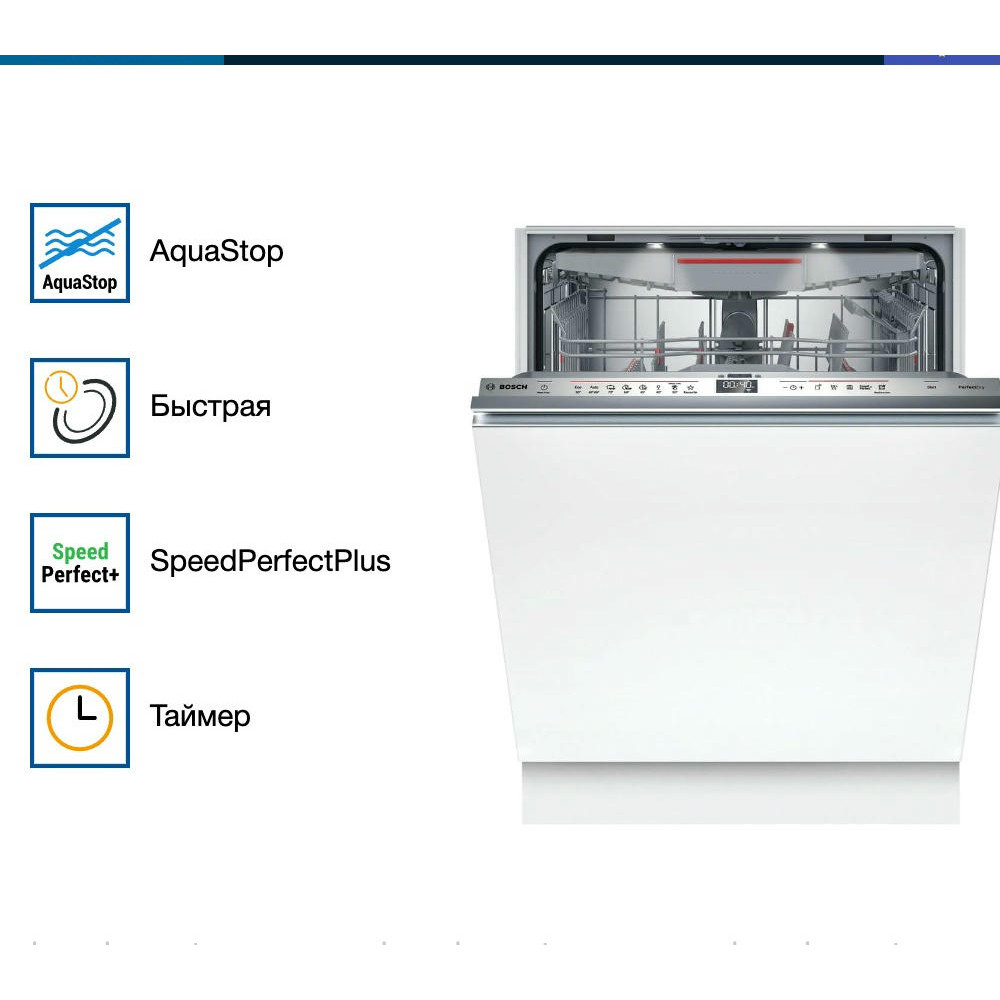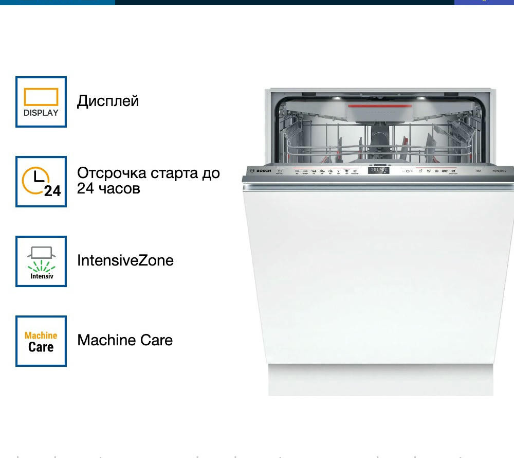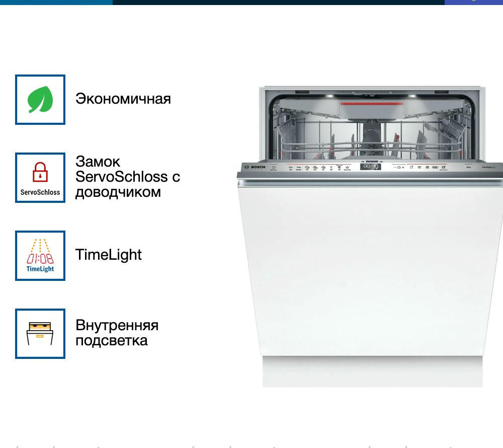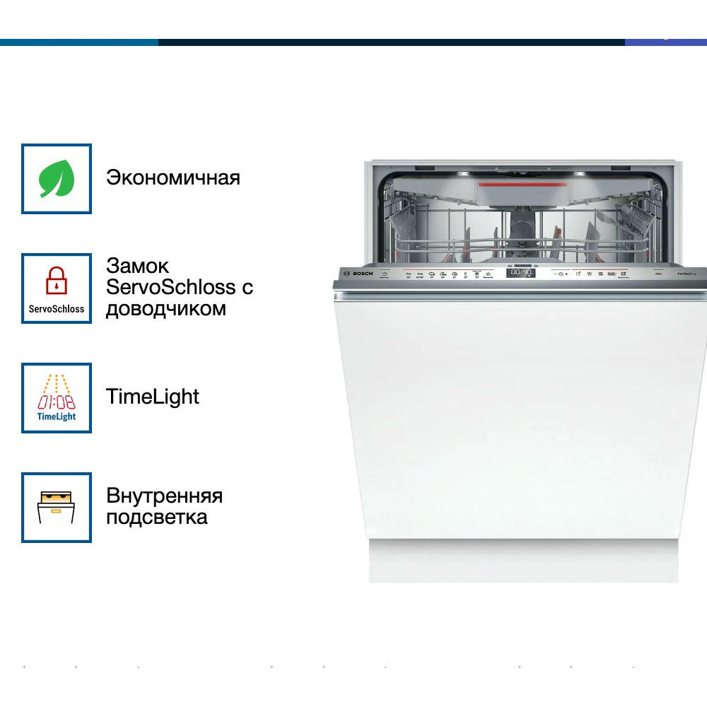 Встраиваемая посудомоечная машина Bosch SMV6ZCX49E оснащена тихим мотором EcoSilence Drive, он отличается долговечным сроком службы с гарантией в 10 лет. Технология Home Connect позволяет управлять устройством отдаленно с помощью вашего смартфона. DosageAssist — это специальный отсек на верхнем коробе, в который попадает таблетка моющего средства в процессе мытья. В отсеке она полностью растворяется, что гарантирует оптимальное качество мытья посуды.