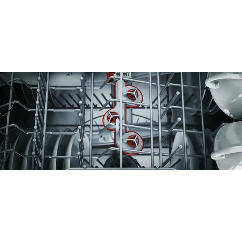 Прибор оснащен инверторным двигателем EcoSilence Drive, который обеспечивает тихую и эффективную работу. При этом уровень шума составляет всего 41 дБ. Устройство имеет 8 стандартных программ мытья и 7 температурных регимов, включая быструю, экономичную, интенсивную, деликатную и ночную программы, а также предварительное ополаскивание. Такой выбор позволяет подобрать наиболее подходящий режим в зависимости от типа и количества загруженной посуды.