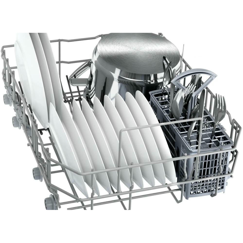 Посудомоечная машина Bosch SPU 2HKW57S оснащена инверторным двигателем EcoSilence Drive, он надежнее, тише и долговечнее обычных моторов. AquaStop — предназначен для того, чтобы обеспечить безопасность вашей квартиры от неожиданных проблем в виде затопления. Благодаря технологии бережного мытья исключается возможность повреждения тонкого стекла.