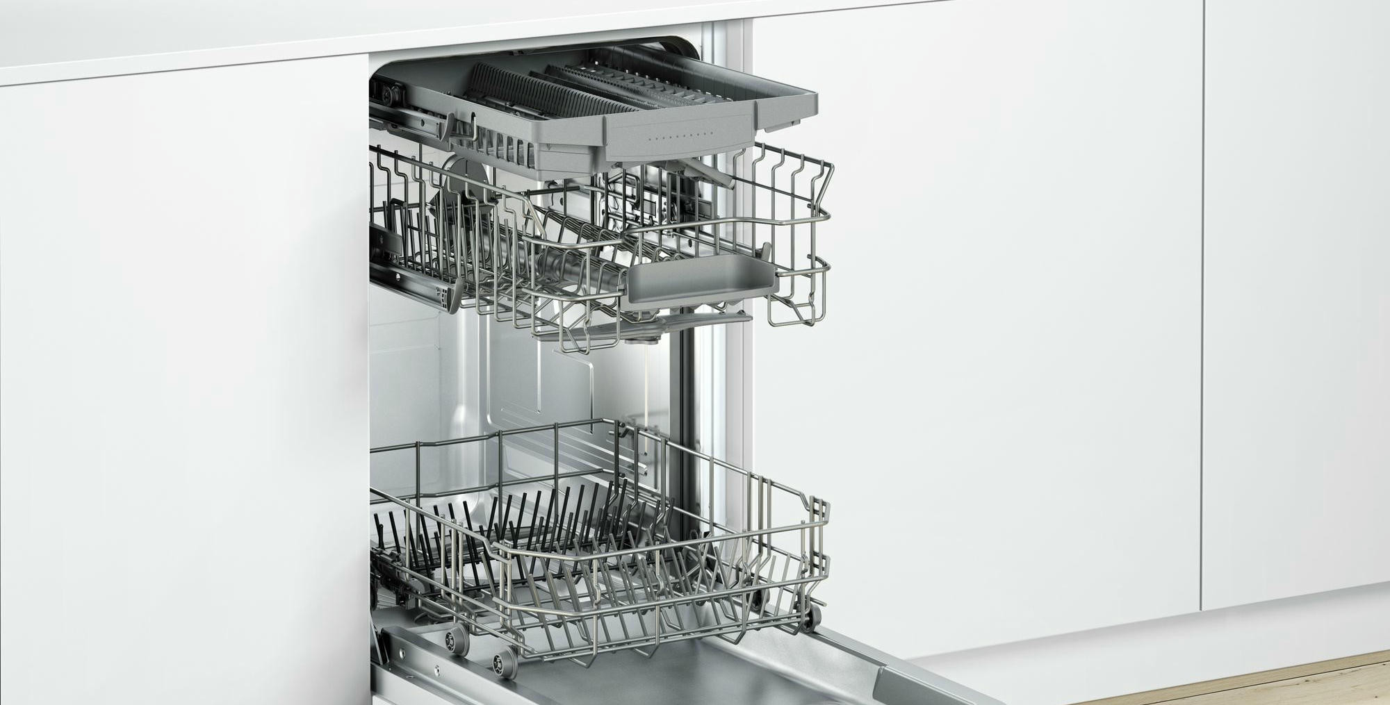 Посудомоечная машина Bosch SPV25FX00R — узкая встраиваемая модель с 5 программами мытья и дополнительной функцией «Экстрасушка». При выборе «Быстрого» режима слабозагрязненную посуду можно отмыть всего за полчаса. Теплообменник защищает стекло от температурного шока.