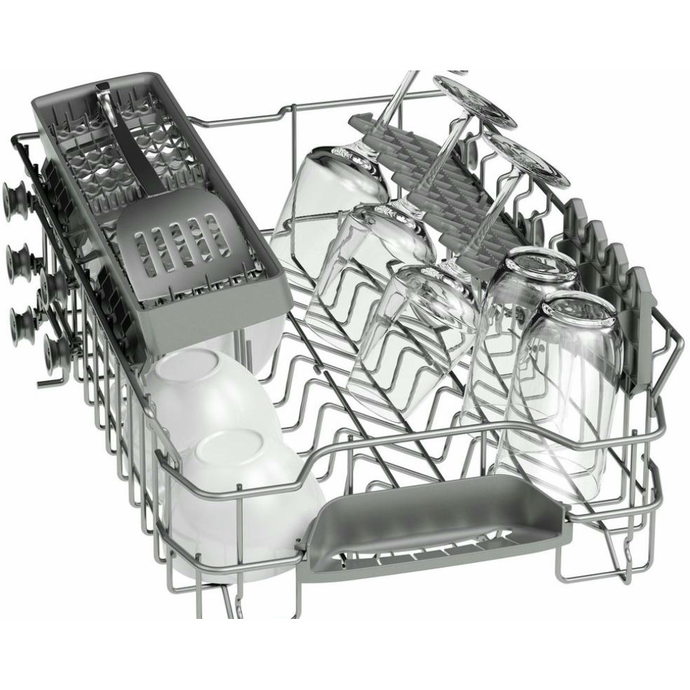 Посудомоечная машина Bosch SPV45DX00R — встраиваемая модель с 5 программами мытья и защитой от протечек Aquastop. Регулируемый по высоте верхний короб позволяет разместить в нижнем ящике противни и большие кастрюли. Специальная функция Intensive Zone обеспечивает превосходные результаты при одновременной загрузке сильно загрязненной посуды на нижний уровень и хрупких бокалов наверх. Вода в интенсивную зону подается под давлением, что гарантирует сохранность стекла и чистоту кастрюль и тарелок.