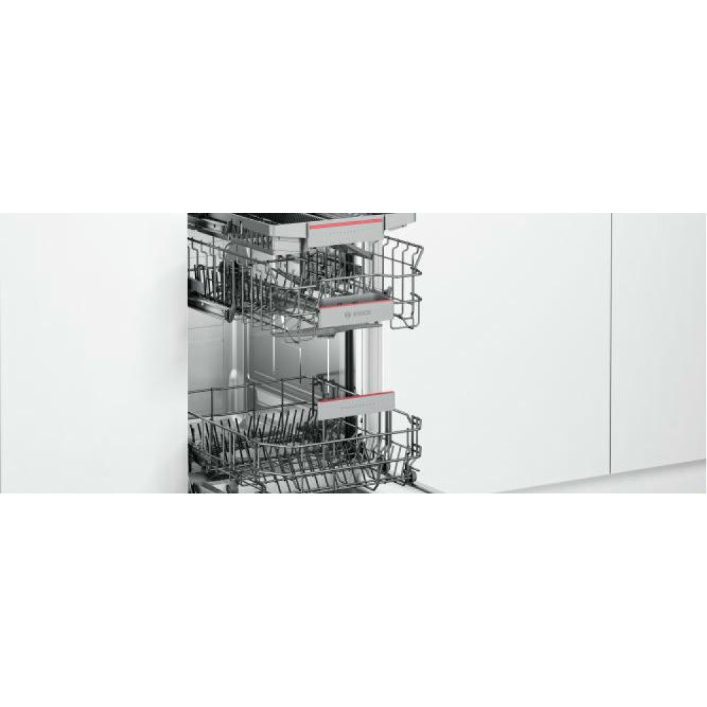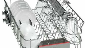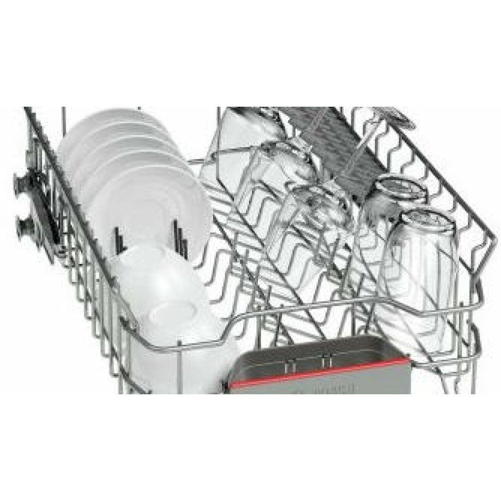 Посудомоечная машина Bosch SPV45MX01E оснащена корзинами VarioFlex, сами корзины регулируются по высоте, что упрощает загрузку посуды. Устройство обладает классом энергоэффективности А+. Красный индикатор InfoLight, появляющийся на полу перед посудомоечной машиной, информирует о рабочем цикле.
