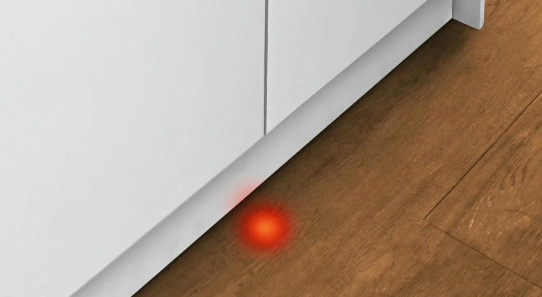 Луч Info Light светит на пол, когда программа выполняется. Если открыть дверь до завершения мойки, процесс сушки будет нарушен, так как внутрь камеры попадет холодный воздух. Луч Info Light погаснет, если программа завершена. Таким образом вы точно знаете, что сушка посуды выполнена в полном объеме и не откроете дверцу раньше времени.