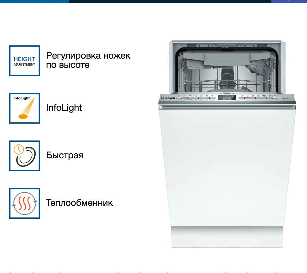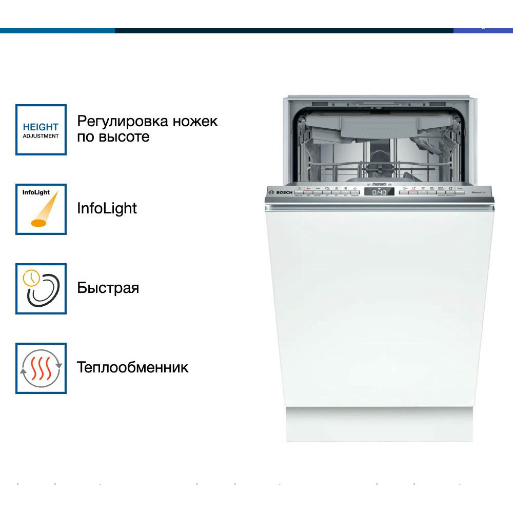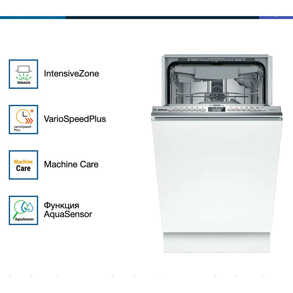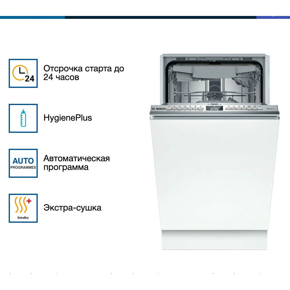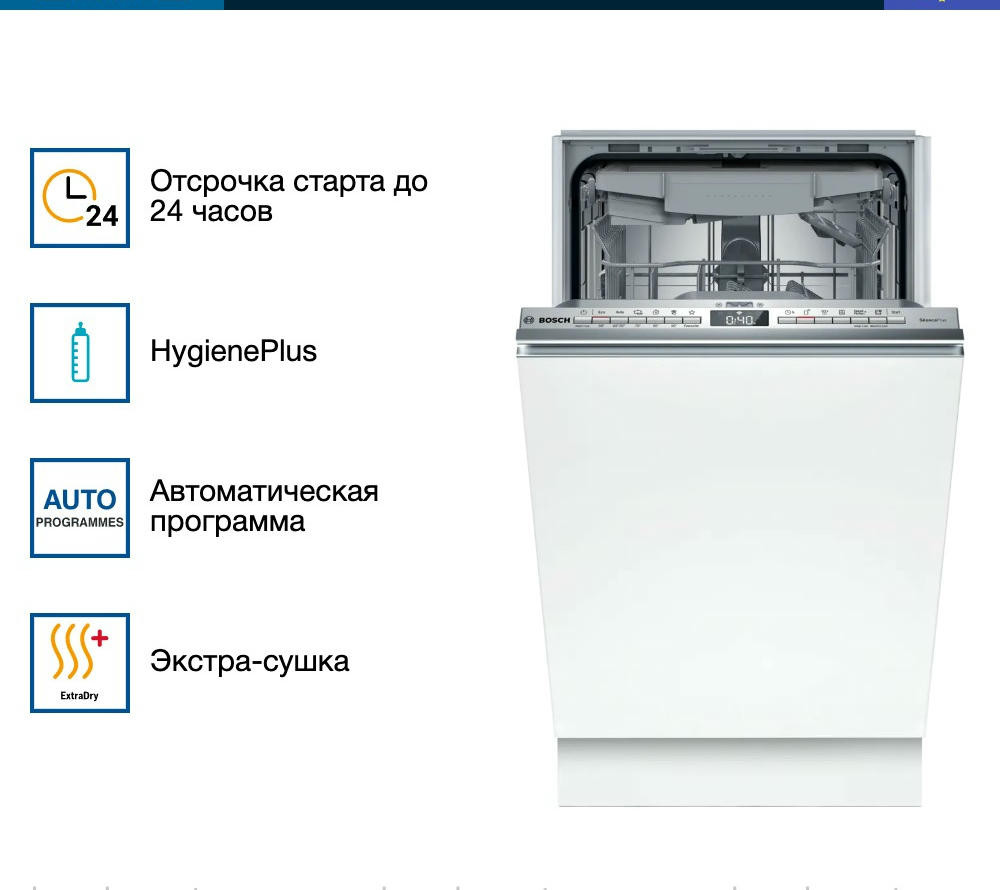 Встраиваемая посудомоечная машина Bosch SPV4HMX10E из серии Serie | 4 — это надежное и эффективное решение для современной кухни. Устройство выполнено в узком форм-факторе, что позволяет его установку даже в самых компактных пространствах.