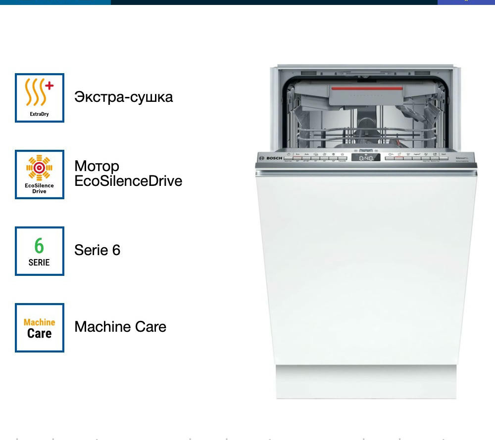 Встраиваемая посудомоечная машина Bosch SPV6EMX65Q - это уникальное сочетание элегантного дизайна и передовых технологий. Узкая модель с нержавеющей стальной панелью управления идеально впишется в любой интерьер, занимая минимум пространства.