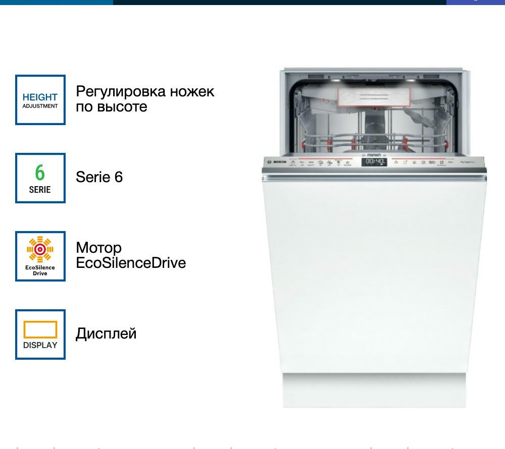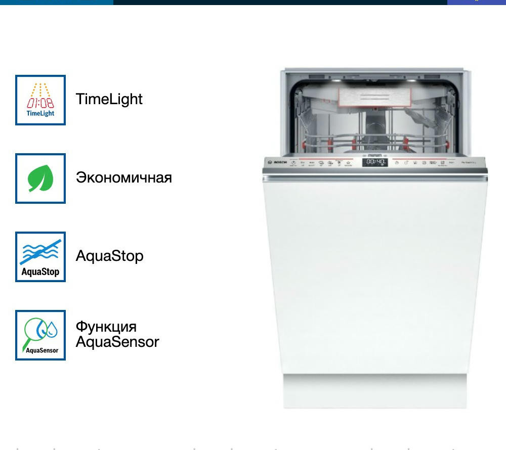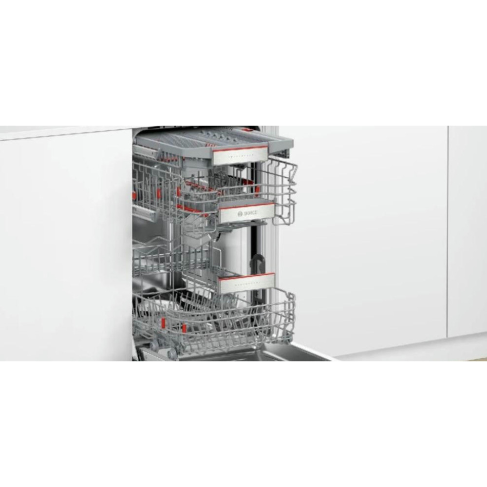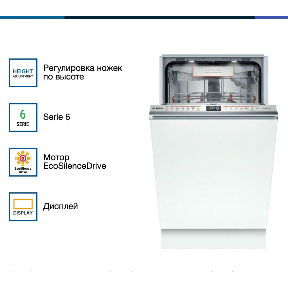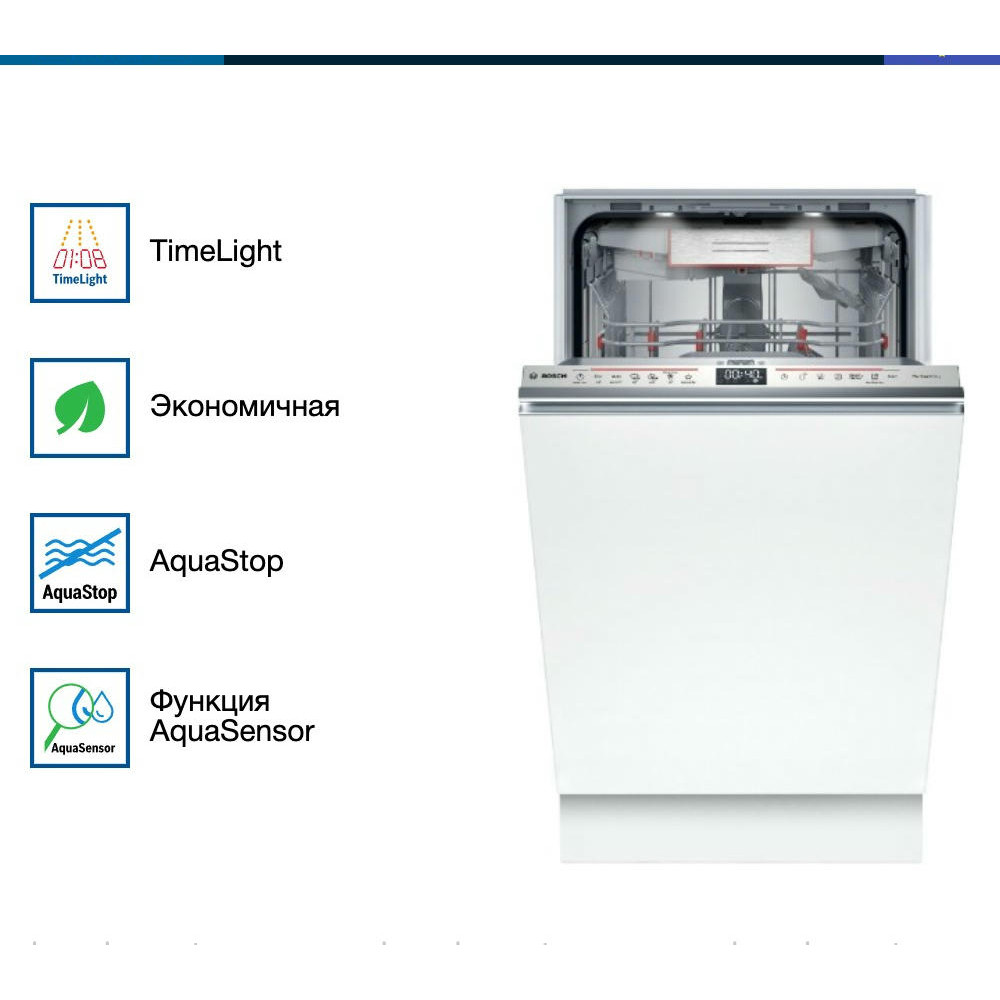 Встраиваемая посудомоечная машина Bosch SPV6ZMX17E обладает элегантным дизайном и компактными размерами, что позволяет ей гармонично вписаться в любой интерьер кухни. Изготовленная из нержавеющей стали, она не только привлекательно выглядит, но и обеспечивает долгий срок службы. Модель оснащена инверторным двигателем EcoSilence Drive, который обеспечивает тихую и эффективную работу. С его помощью машина способна обслуживать до 10 комплектов посуды, что делает ее идеальным выбором для средних и больших семей.