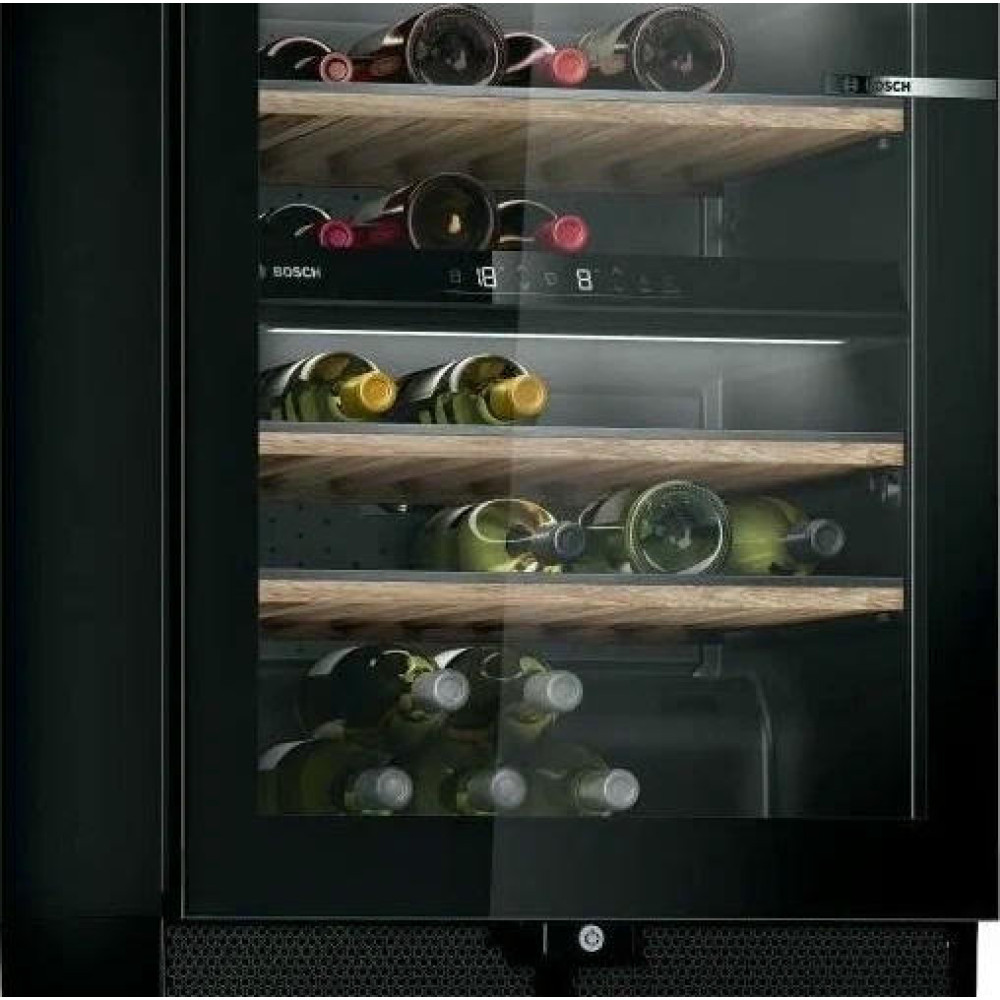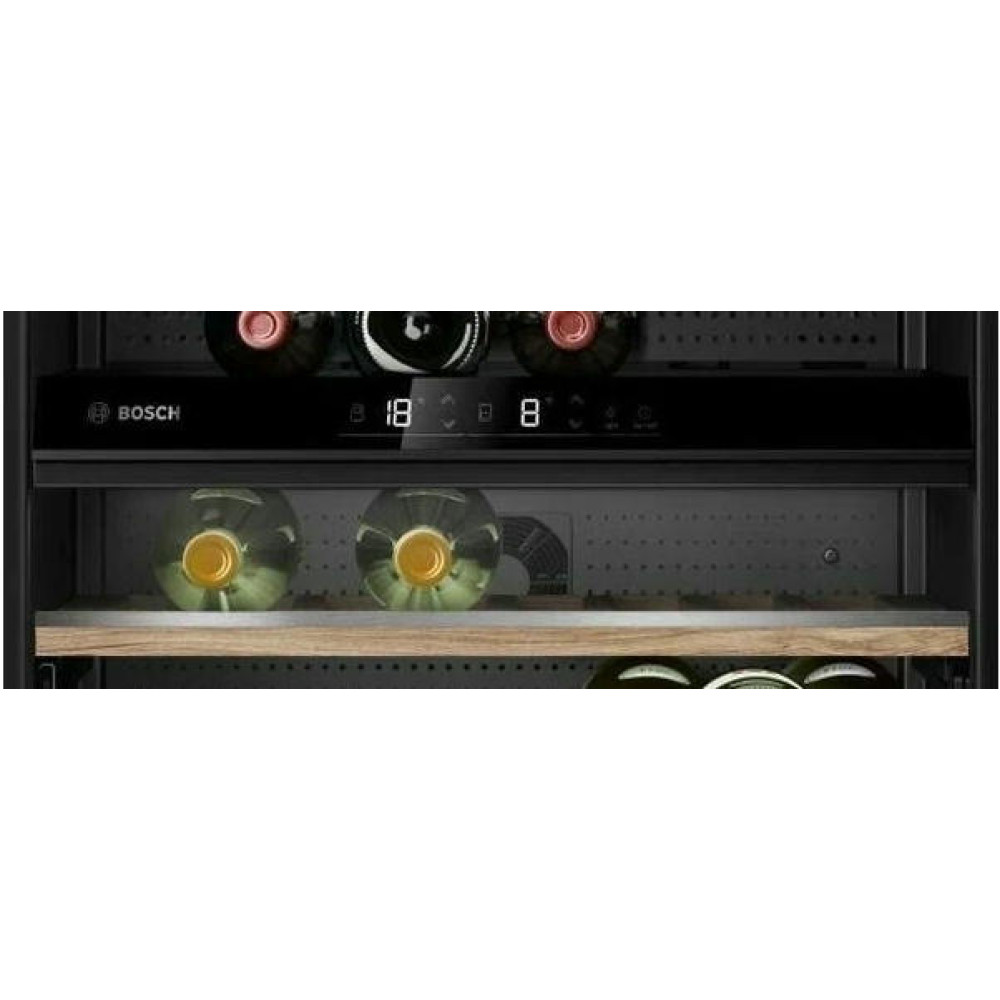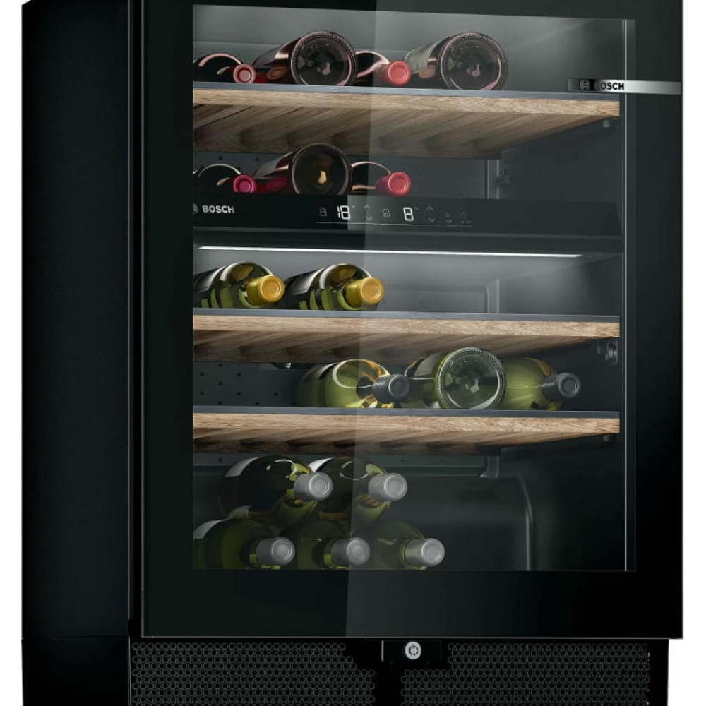 Встроенный вентилятор обеспечивает равномерную циркуляцию воздуха, что позволяет создавать внутри камеры идеальную температуру и влажность. Это создаёт оптимальные условия для хранения вина во встраиваемом винном шкафу Бош KWK16ABGA. Приобретая такую технику, вы получаете гарантию экономии электроэнергии, что позволяет снизить расходы на электричество и экологическую нагрузку. Это обуславливается классом энергопотребления А, который означает высокий уровень энергоэффективности.