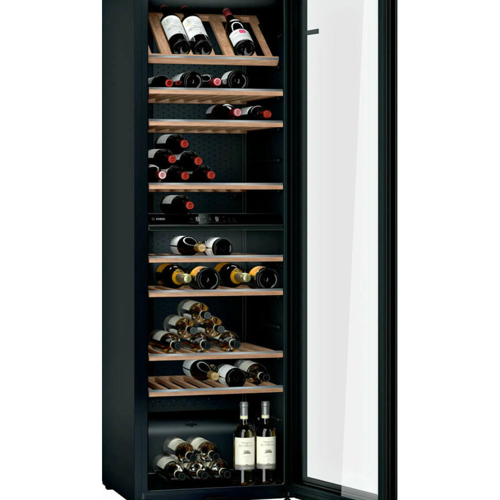 Винный шкаф Bosch KWK36ABGA вмещает в себя до 199 бутылок объемом 0.75 л. Благодаря двум температурным зонам вы можете хранить белые и красные вина отдельно друг от друга. Температурный диапазон составляет от 7 до 19 градусов, что позволит хранить любые вина при наиболее оптимальных условиях.