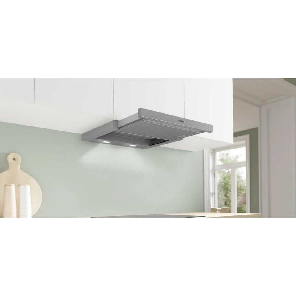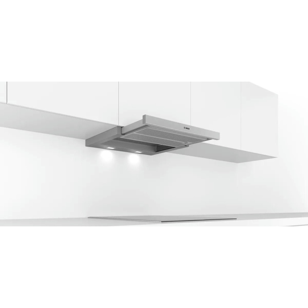 Встраиваемая вытяжка Bosch DFS067A51 — это современное решение для кухни, сочетающее в себе функциональность и стильный дизайн. Продукт произведен в Евросоюзе, что гарантирует высокое качество и надежность. Корпус устройства выполнен из прочной и стойкой к коррозии нержавеющей стали серебристого цвета, что придает ему элегантный и современный вид.