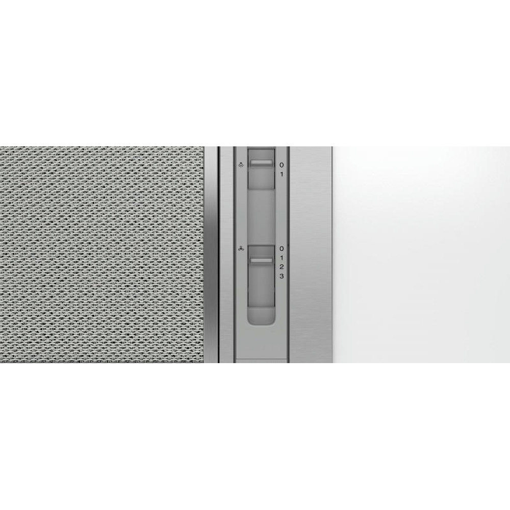 Вытяжка Bosch DLN53AA50 относится к типу встраиваемых, поэтому потребителю видна только рабочая часть. Остальной корпус скрыт за подвесным шкафом кухонного гарнитура. Стальной цвет можно назвать универсальным для бытовой техники, поэтому он подойдёт для большинства интерьеров.