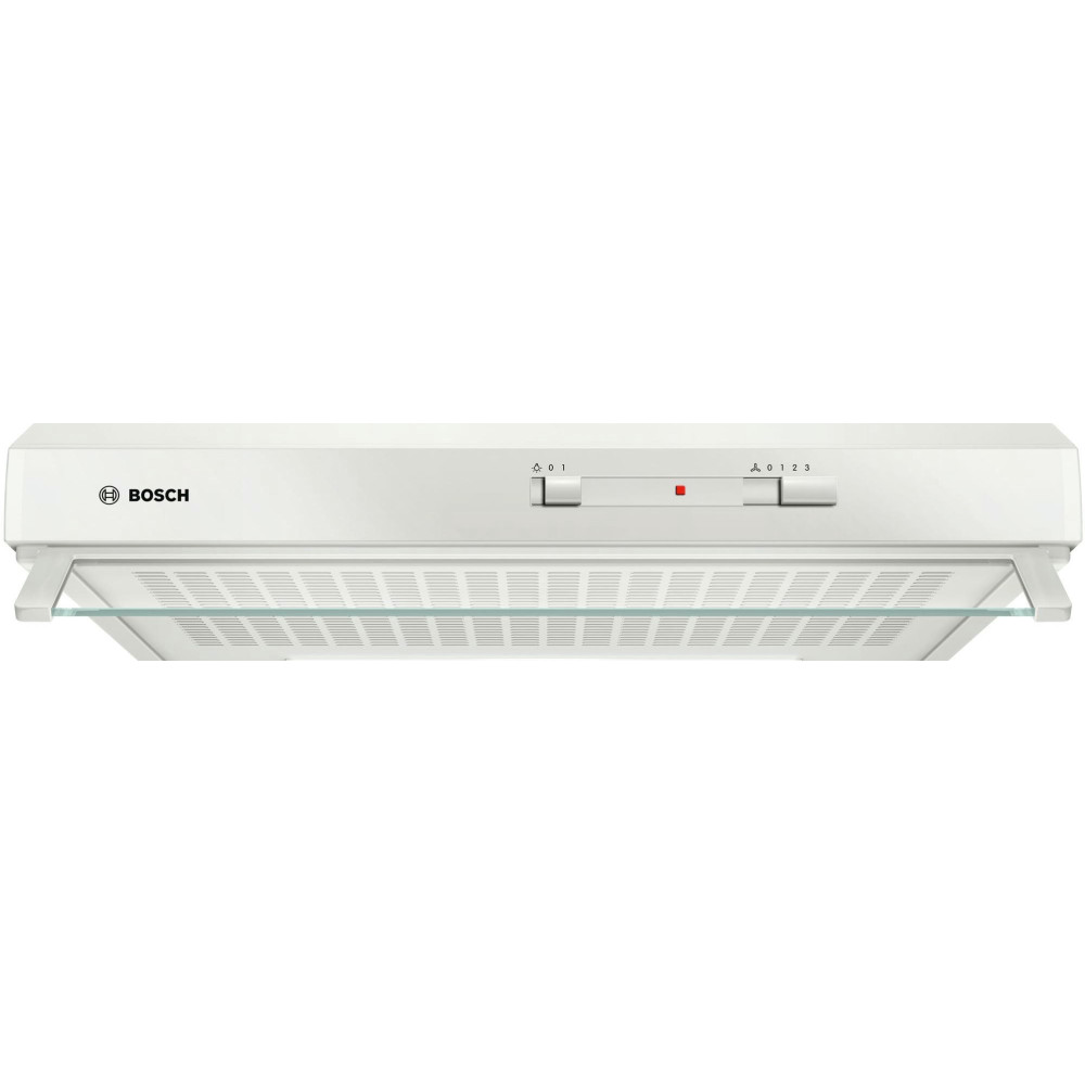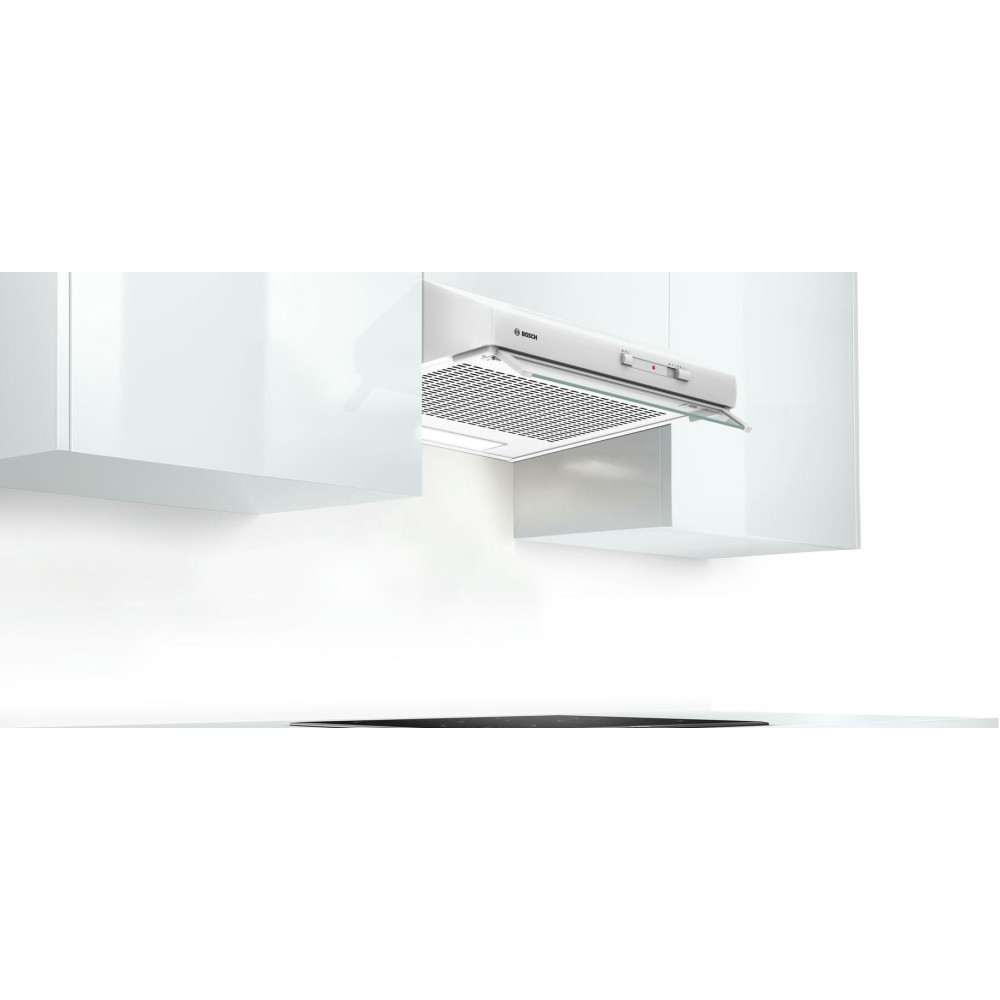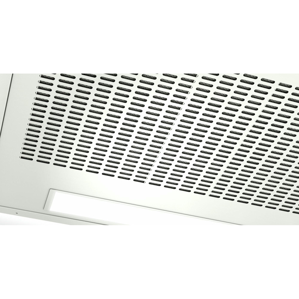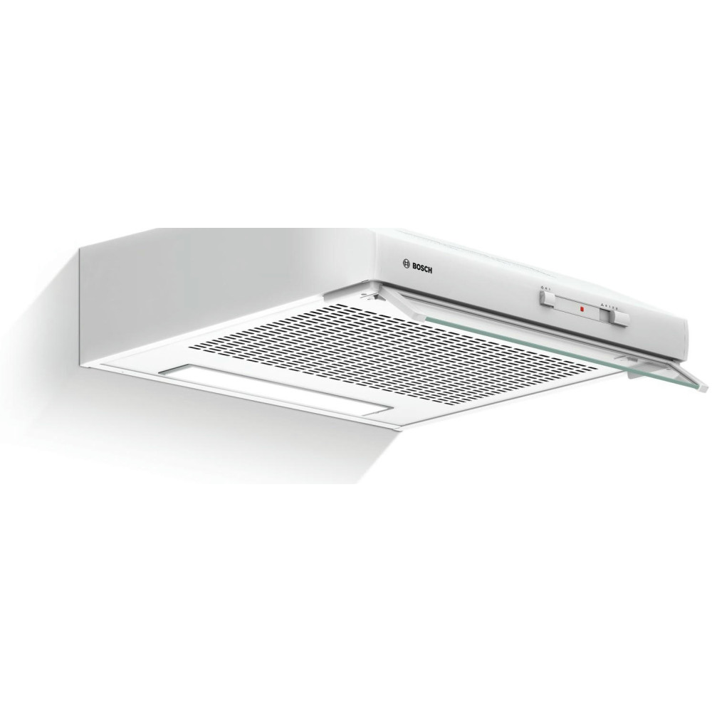 Козырьковая вытяжка Bosch DUL 62FA20 — компактная модель белого цвета, которая крепится к стене или в подвесной шкаф. Особенность — жировой фильтр из нетканого синтетического материала, который можно стирать вручную. Производительность до 230 м3/ч позволяет эффективно очистить небольшую кухню от запахов и загрязнений.