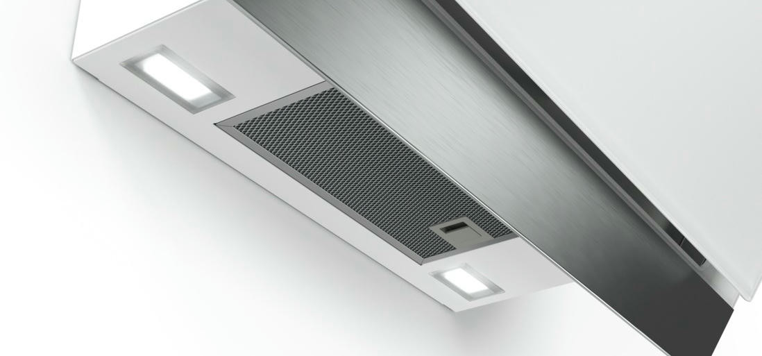 Сенсорное управление Touch Select расположено на передней панели, легким касанием вы можете переключить скорости и включить свет. Решетка жироулавливающего фильтра закрыта стеклянным экраном. Металлический фильтр можно мыть в посудомоечной машине.