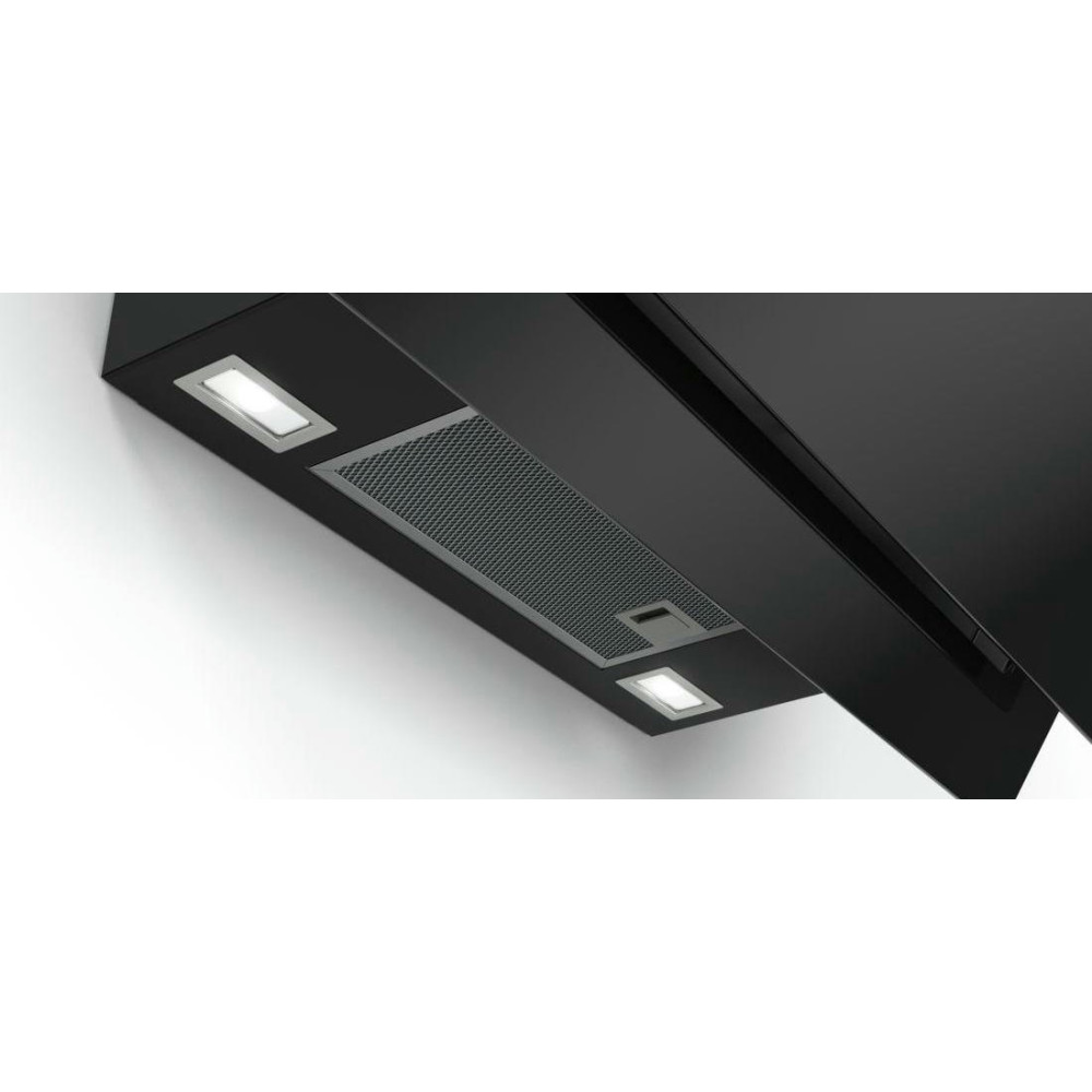 Конструкция вытяжки способствует эффективному забору воздуха и тихой работе. Сенсорное управление удобно, потому что переключение режимов производится легким прикосновением. За стеклянной панелью, закрывающей фильтр, легко ухаживать. Металлический жировой фильтр можно мыть в посудомоечной машине.