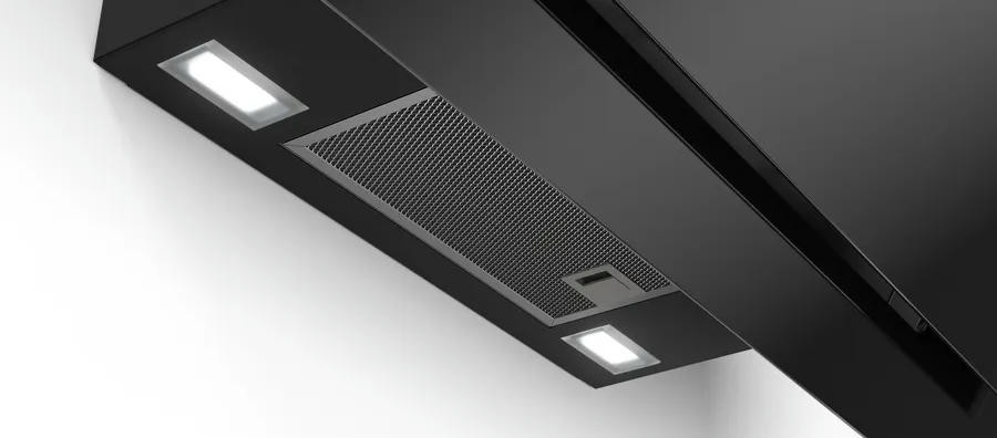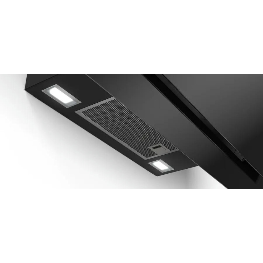 Вытяжка Bosch DWK97HM61T — это уникальное сочетание инновационных технологий и стильного дизайна. Представленная модель выполнена в строгом черном цвете, который подчеркивает ее современность и элегантность. Корпус из нержавеющей стали и стеклянный экран не только придают изделию привлекательный внешний вид, но и обеспечивают его долговечность и надежность. При монтаже модель можно установить на стену, что позволяет сэкономить пространство на кухне. Размеры вытяжки составляют 92.9 см в высоту (максимальная высота — 125.8 см), 89 см в ширину и 49.9 см в глубину, что делает ее достаточно компактной и удобной для использования. Управление вытяжкой осуществляется с помощью сенсорных элементов типа TouchSelect, что обеспечивает простоту и удобство использования. На дисплее отображается вся необходимая информация о режимах работы и скорости вентилятора.