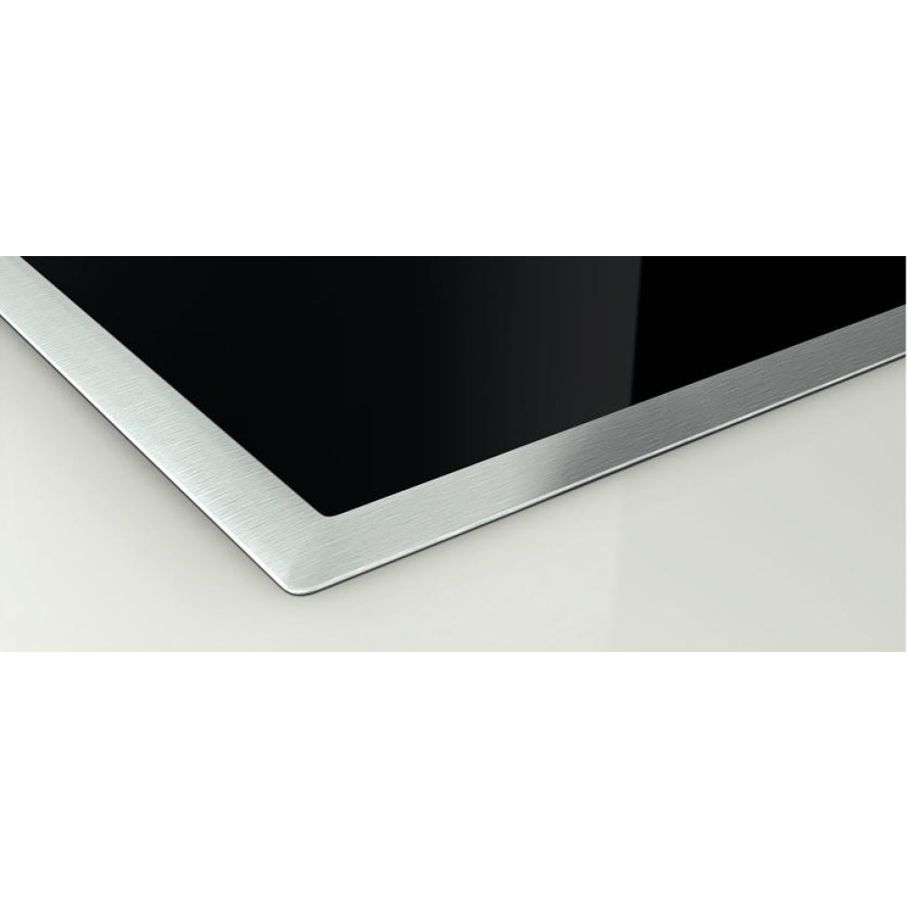 Стеклокерамическая варочная панель NKN 645B17 дополнена рамкой из нержавеющей стали. Зоны Hi-Light быстро разогреваются и являются эффективным способом нагрева. Таймер с отключением для каждой конфорки оснащен звуковым сигналом. Автоматика закипания — это быстрое увеличение температуры вначале для быстрого разогревания продукта и переход на заданную ступень мощности для экономии времени. Конфорку с овальной зоной нагрева удобно использовать для приготовления блюд в специальной посуде — утятнице или лотке для рыбы.