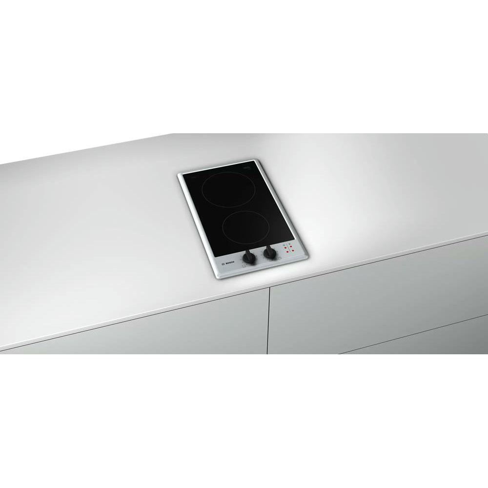 Варочная панель Bosch PKE345CA2E подключается к сети напряжением 220-240 В и имеет мощность 2900 Вт. В комплекте поставляется сетевой кабель длиной 2 метра без вилки. Минимальная толщина столешницы, на которую можно установить данную модель, составляет 30 мм. Это делает ее универсальным решением для любого интерьера.