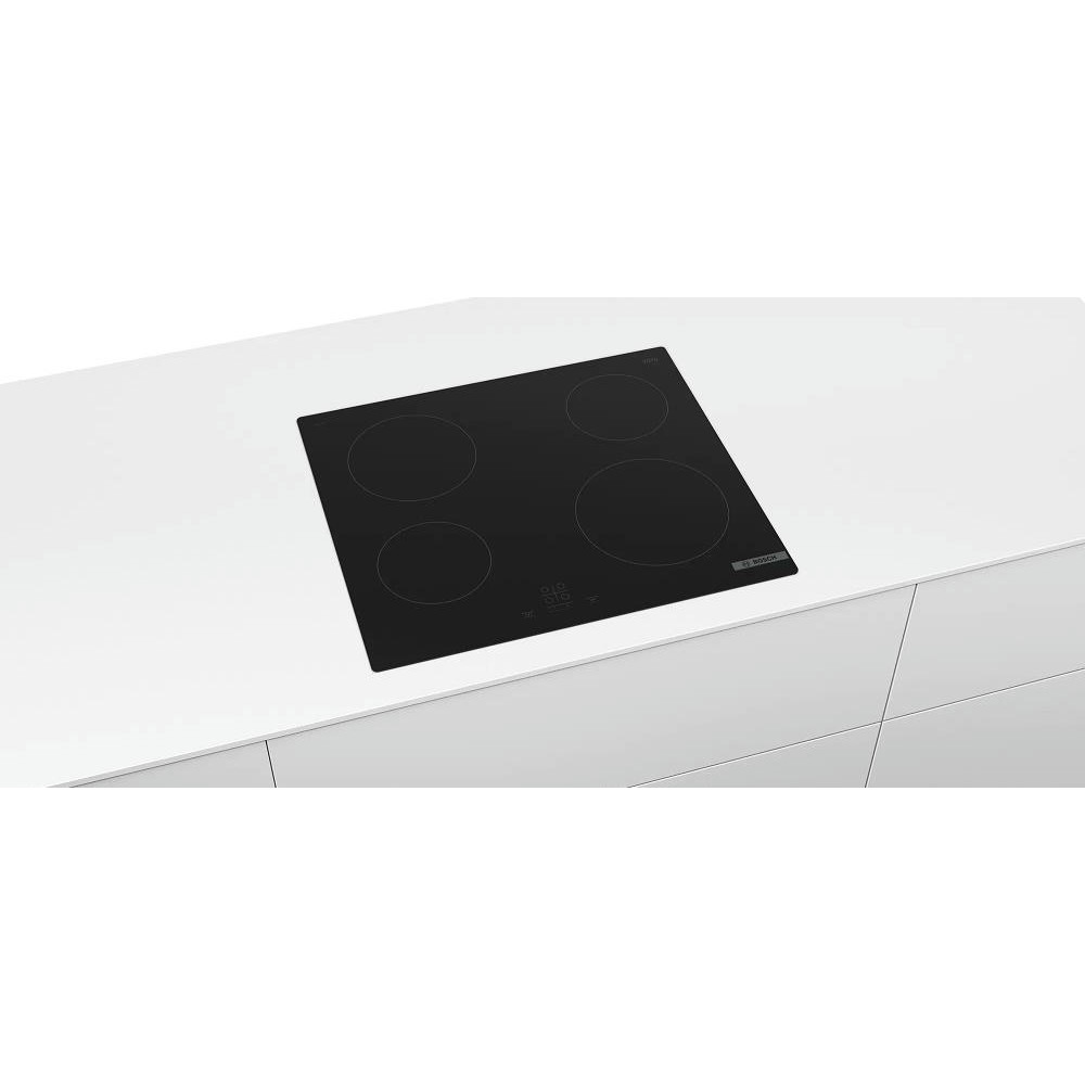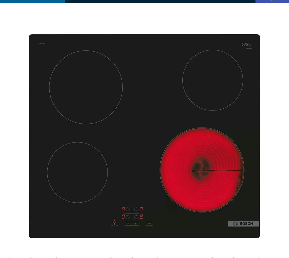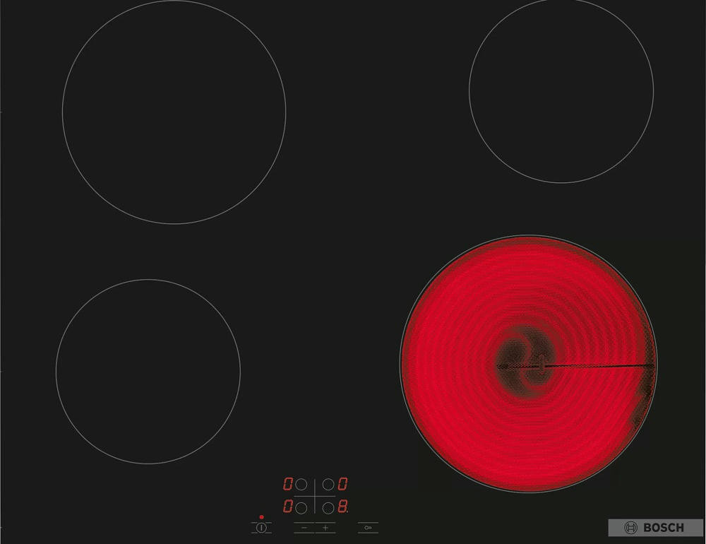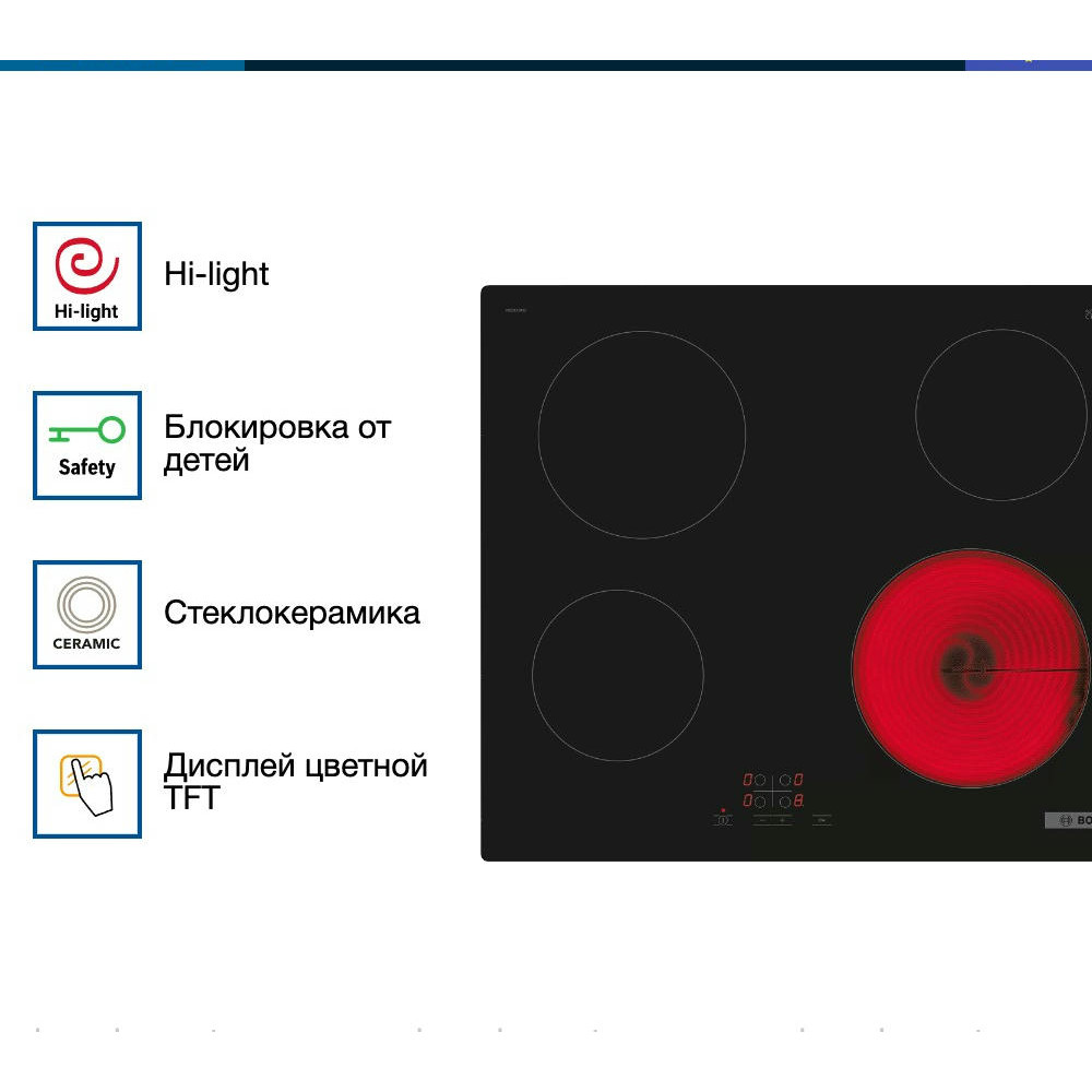 Данная модель оснащена 4 конфорками разного диаметра и мощности, что обеспечивает комфортное одновременное приготовление нескольких блюд. Управление осуществляется при помощи удобной и интуитивно понятной сенсорной панели TouchSelect. Для безопасной эксплуатации предусмотрены: функция блокировки от детей, автоматическое отключение устройства при бездействии и индикация остаточного тепла для каждой зоны нагрева.