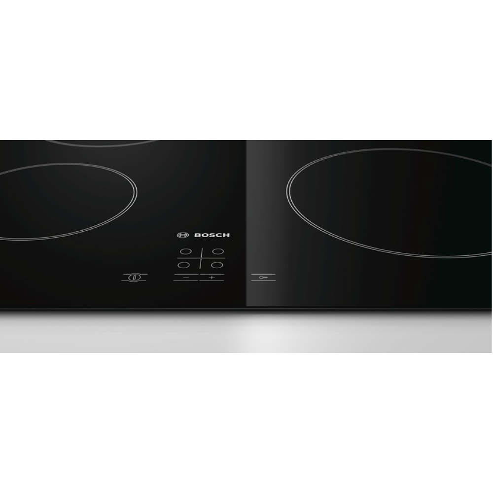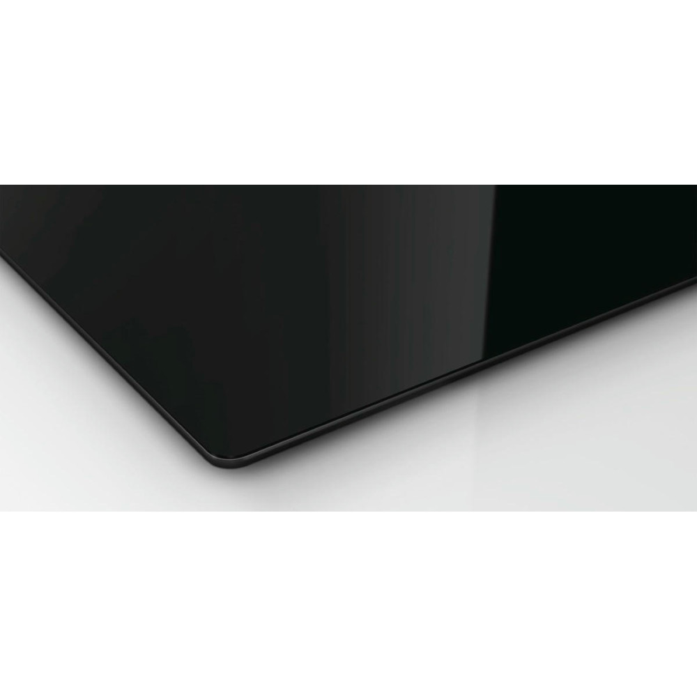 Стеклокерамика, из которой сделана панель, имеет прямой край без металлической рамки. Четыре конфорки расположены на оптимальном расстоянии друг от друга, на них удобно ставить посуду. Присутствует зона HiLight-нагрева. Сенсорная панель управления имеет функцию защиты от детей (обозначается замком), таймер и временную блокировку на время протирания. Есть автоматическое отключение конфорок после завершения готовки.