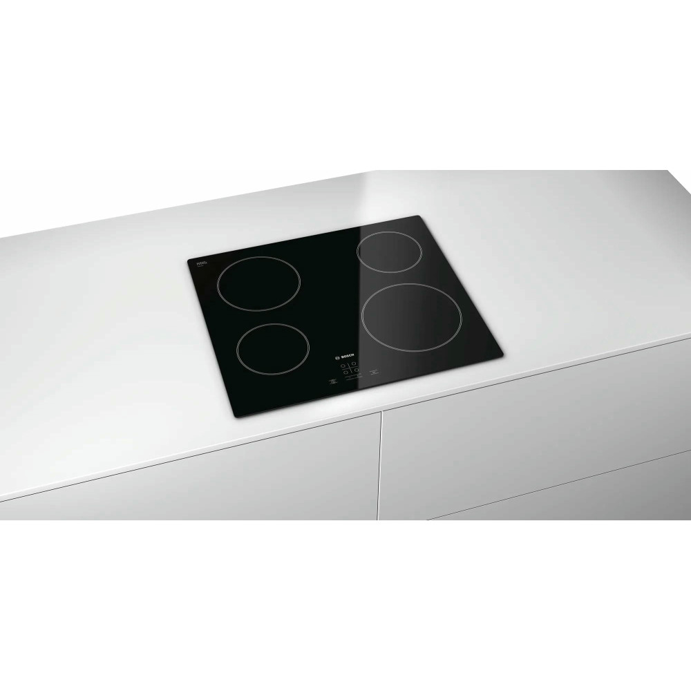 Электрическая варочная поверхность Bosch PKE611D17M оснащена 4 независимыми конфорками с индикаторами остаточного тепла, позволяющими узнать, какая из них не остыла и готова к разогреву или томлению различных блюд. При помощи сенсорной системы управления можно легко выбрать желаемый режим работы, а также установить одну из 17 мощностей нагрева. На рабочей поверхности устройства расположена специальная кнопка, позволяющая заблокировать ее работу на определенное время, что незаменимо для семей с маленькими детьми. А защитное отключение панели гарантирует повышенный уровень безопасности.