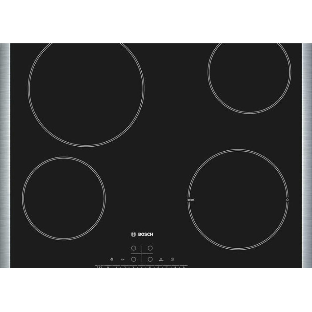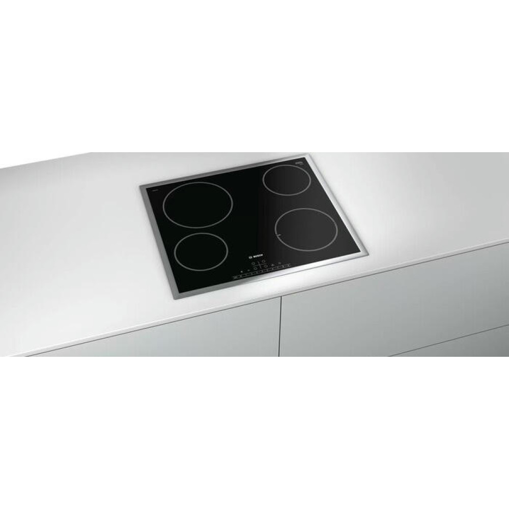 Варочная панель Bosch PKE645FP1E выполнена в черном цвете. Ее стандартные размеры (56x49-50) и квадратная форма подойдут как для маленьких, так и для просторных кухонь. Присутствуют 4 конфорки разных диаметров и мощностей. Поверхность выполнена из стеклокерамики, устойчива к высоким температурам и механическим повреждениям, а также легко очищается от загрязнений. Рамка сделана из нержавеющей стали.