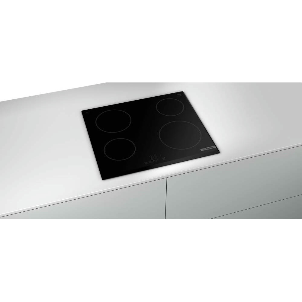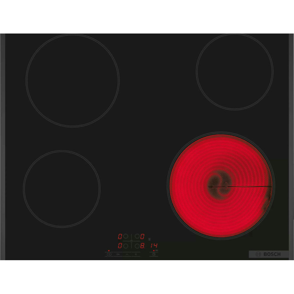 Варочная панель Bosch PKE651BB2R выполнена в черном цвете, дизайн со скошенными краями. Управление сенсорное TouchControl достаточно легкого прикосновения. Таймер отключает выбранную конфорку. Функция «Блокировка от детей» защитит от случайного включения.