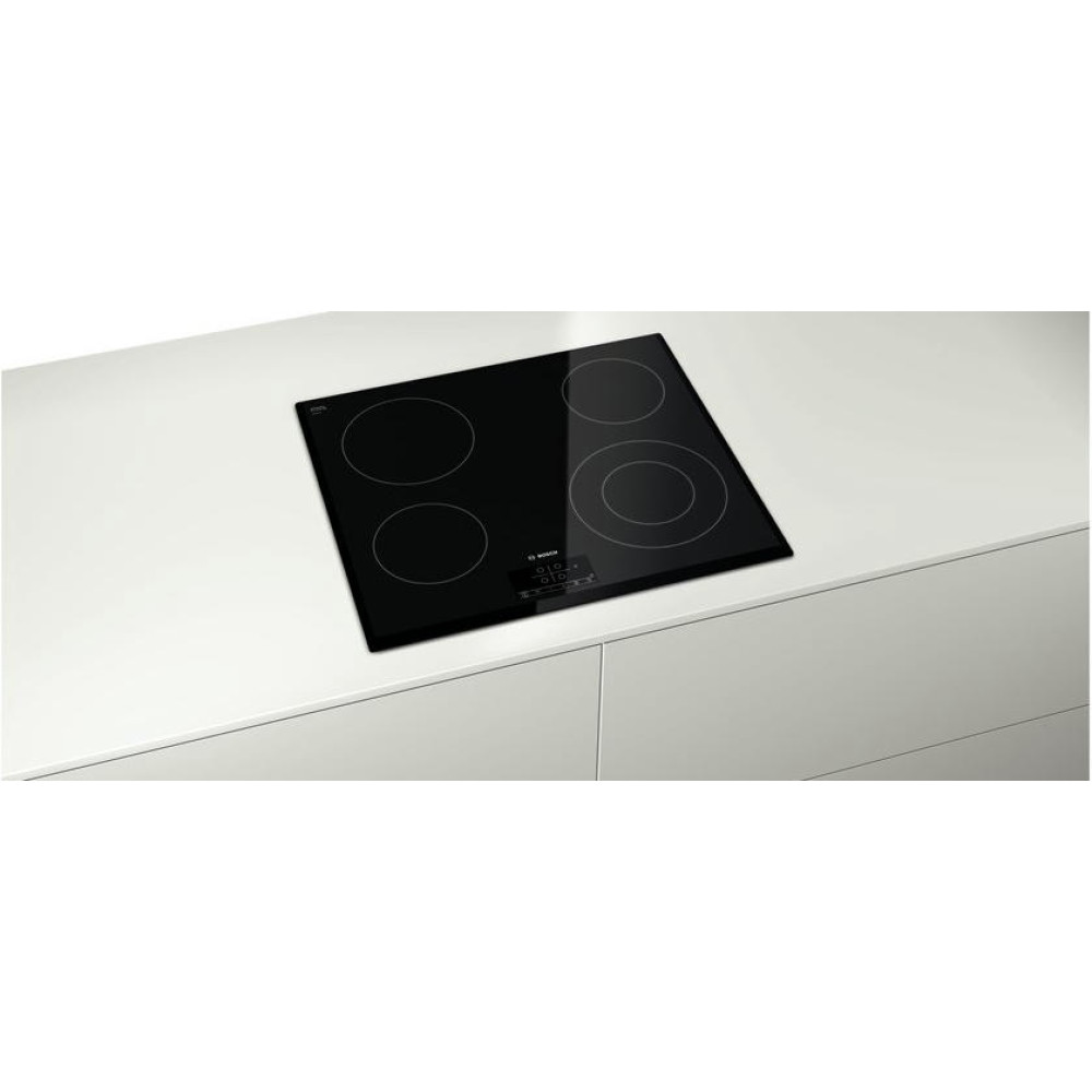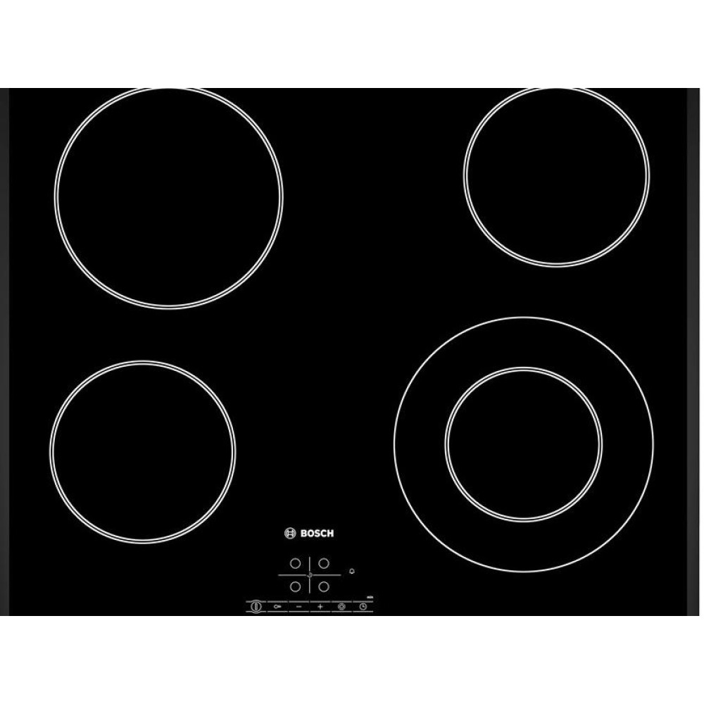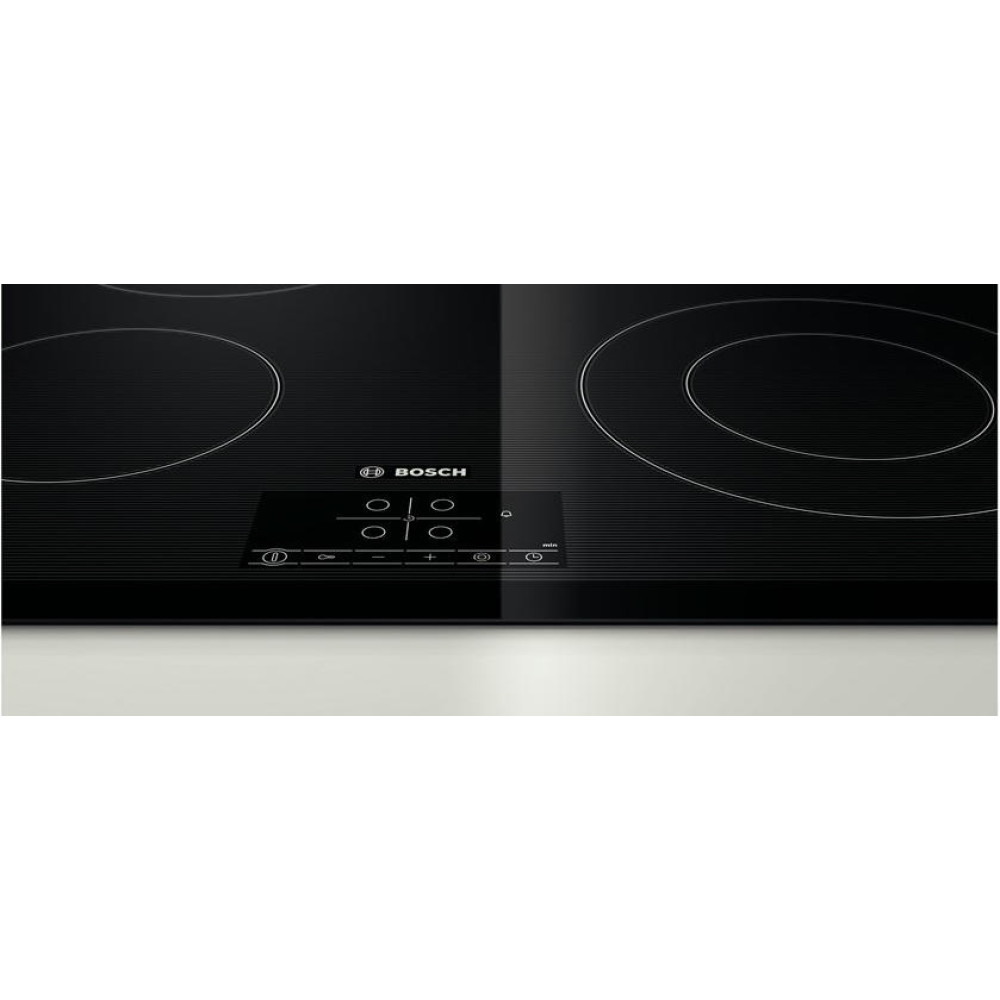 Выбор из 17 ступеней мощности дает возможность подбора оптимального режима приготовления пищи. Нагревательные элементы размещены под стеклокерамической панелью, которая равномерно и быстро передаёт тепло в рабочую зону. Благодаря особенностям этого материала поверхность вне конфорки практически не раскаляется, что делает эксплуатацию Бош PKF 651B17 комфортной и безопасной. Достоинствами стеклокерамики также являются термостойкость, устойчивость к перепадам температуры, прочность. Но вот царапины на ней появляются очень легко. Поэтому нужно выбирать специальные чистящие средства, а посуду использовать только с гладким ровным дном.