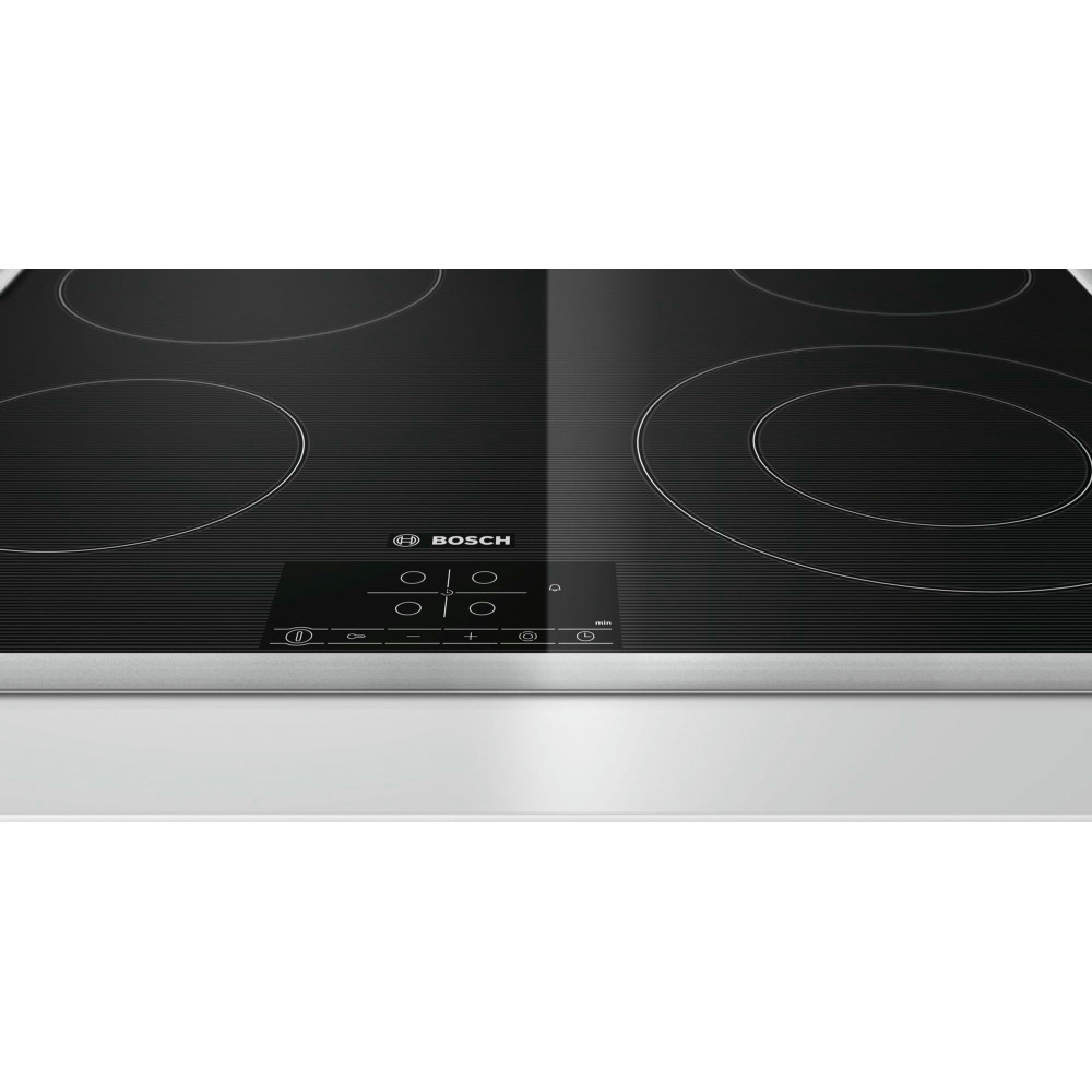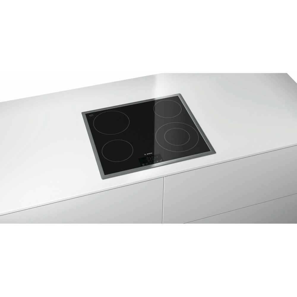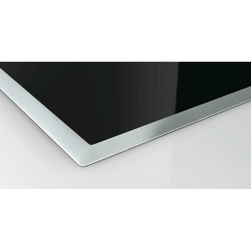 Широкая рамка из нержавеющей стали проходит по периметру. Четыре конфорки имеют сенсорное управление с 9 основными ступенями мощности и несколькими промежуточными. Быстрый нагрев обеспечивает технология Hi-Light. Индикаторы остаточного тепла подскажут, когда панель полностью остыла. Блокировка сенсоров возможна на долгий срок (защита от детей) и на короткий срок (для того, чтобы протереть плиту от загрязнений).