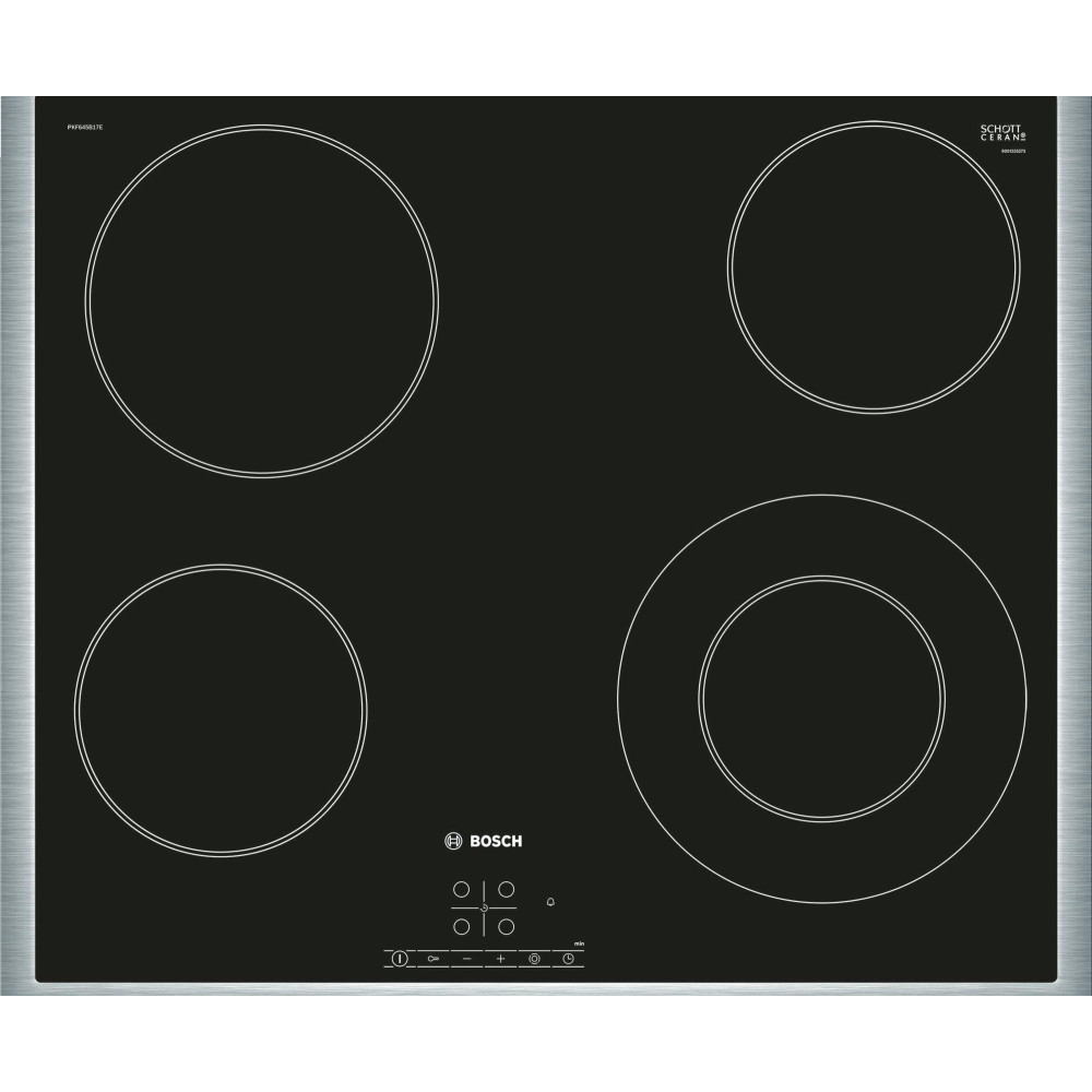 У модели Бош PKF645B17 три одноконтурные и одна двухконтурная конфорка в правом нижнем сегменте — кастрюли большого диаметра лучше ставить именно на нее. Таблица соответствия режимов нагрева и режимов приготовления пищи находится в инструкции, как и список рецептов контрольных блюд.