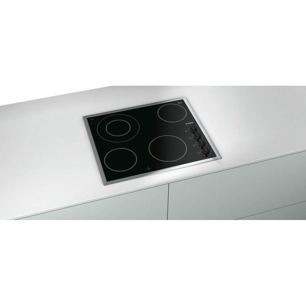 Благодаря чёрному цвету и стальной рамке Бош PKF645CA1E выглядит строго и аккуратно, что позволяет гармонично вписаться в интерьер любой кухни.