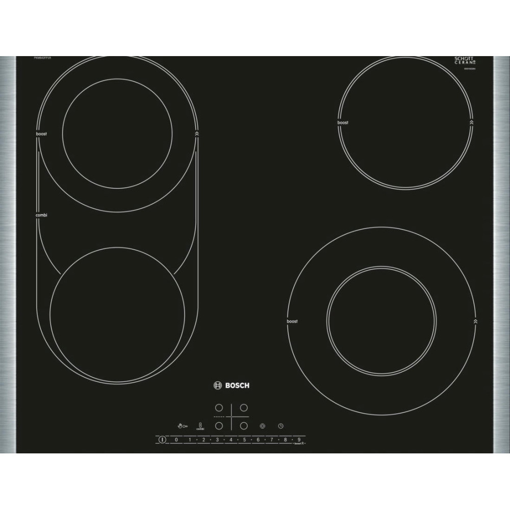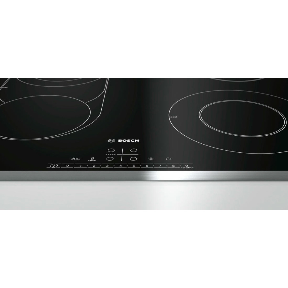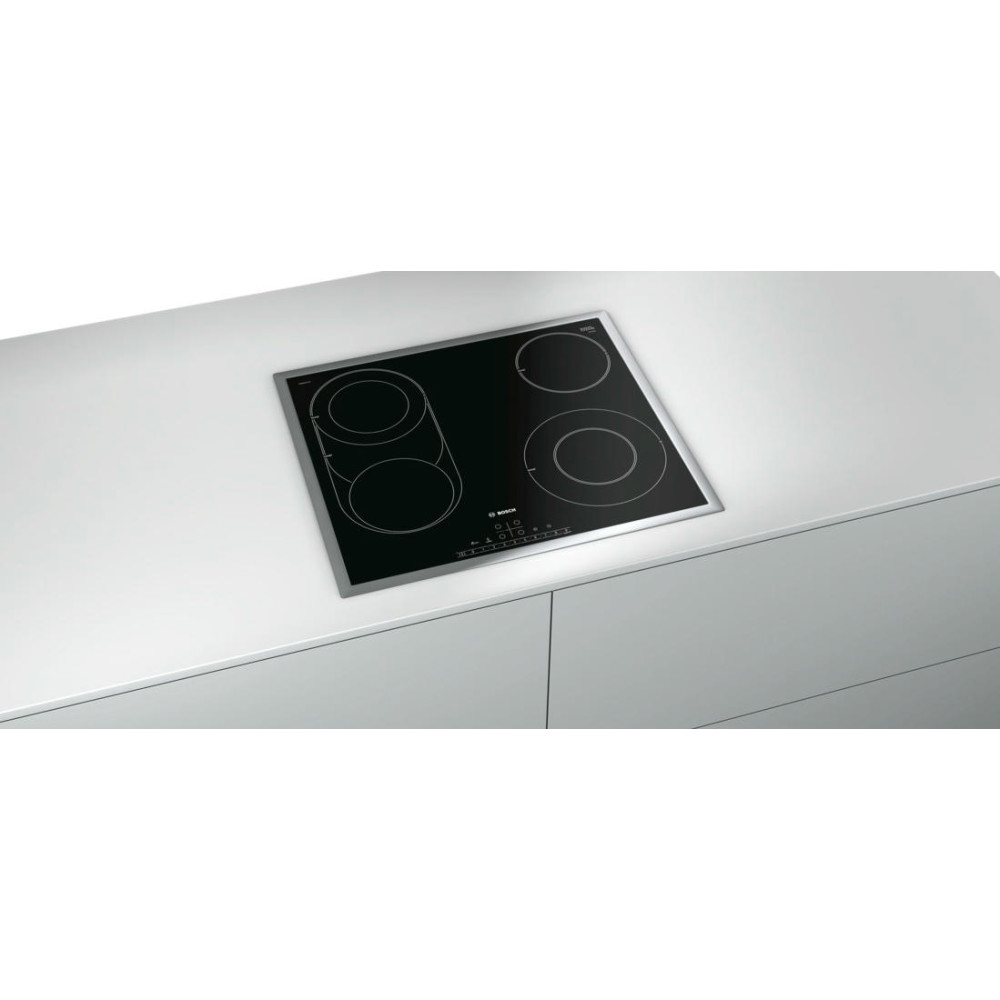 Рабочая поверхность Бош PKM645FP1 стеклокерамическая, она эффектно выглядит, устойчива к высоким температурам и не требует больших усилий по уходу. Рекомендуется протирать её после каждого использования, иначе остатки пищи могут пригорать.
