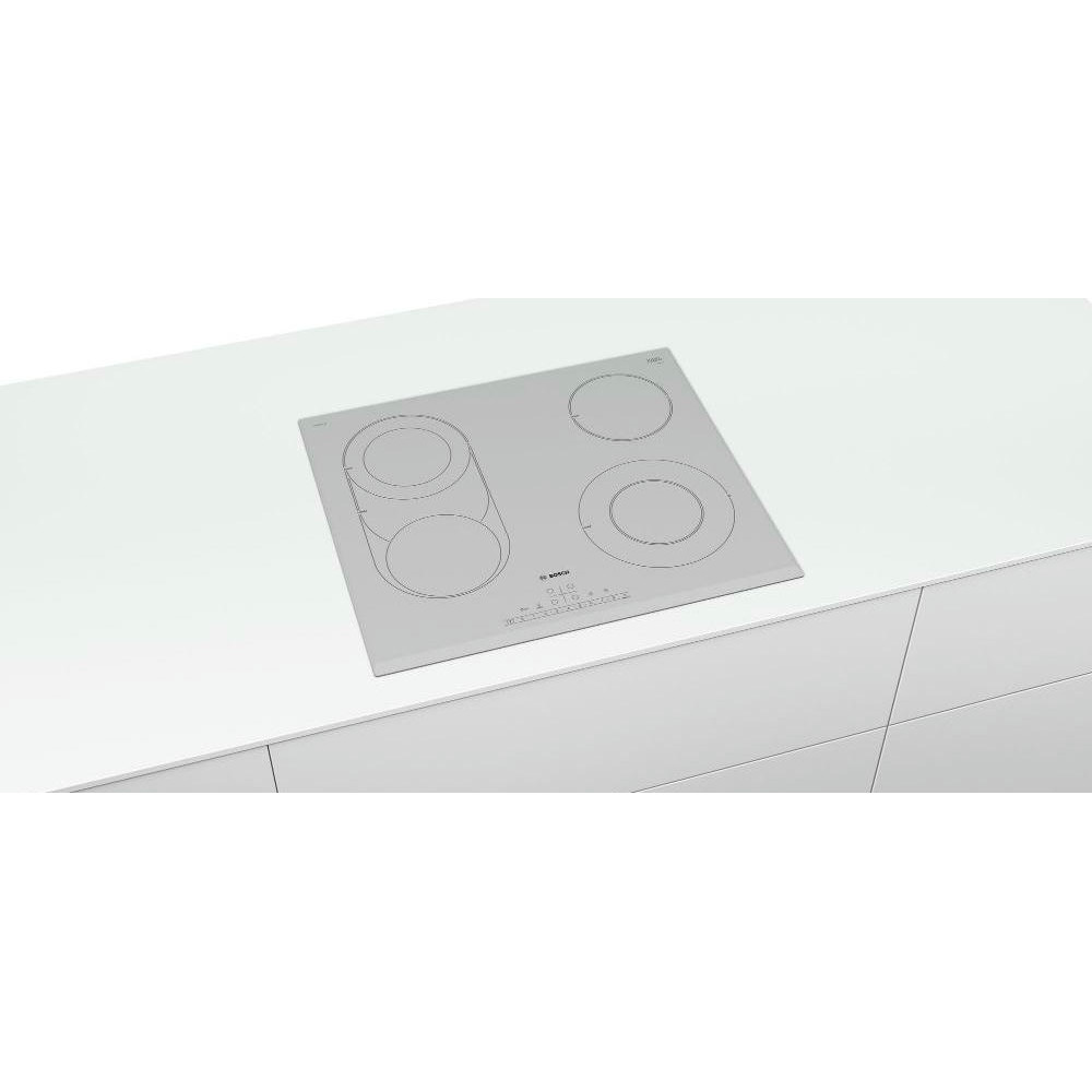 Выполнена из стеклокерамики белого цвета. Управляется при помощи сенсорных кнопок. Предусмотрено 17 ступеней нагрева. Безопасность эксплуатации обеспечивает блокировка от детей, индикация остаточного тепла и автоматическое отключение.