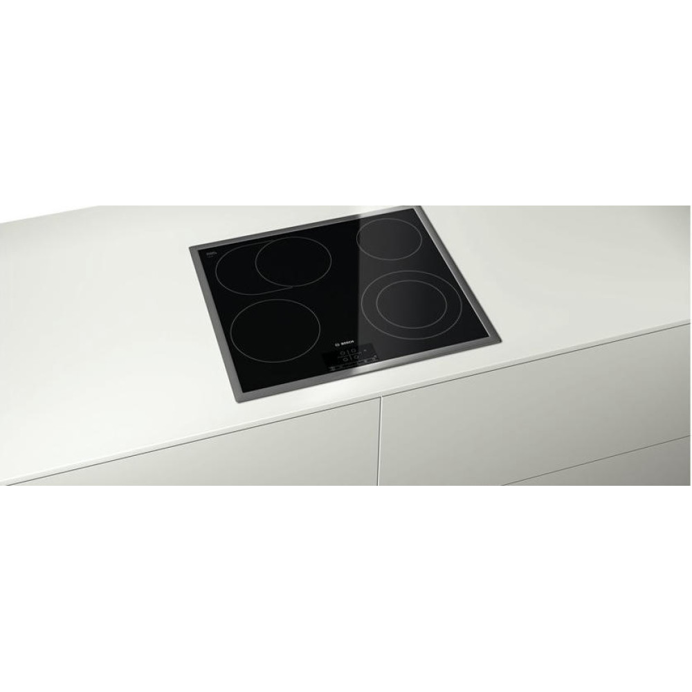Безопасность эксплуатации Бош PKN 645B17 тщательно продумана и организована. Блокировка для безопасности детей оградит от опасных игр с панелью управления. Если в течение длительного времени конфорка включена, но никакой регулировки не происходит, питание автоматически отключается (в зависимости от заданной ступени нагрева этот срок может быть больше или меньше).