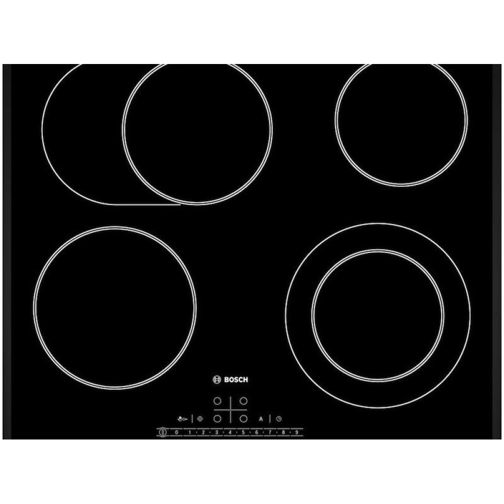 Стеклокерамическая варочная панель PKN 651F17 с овальной и круглой зонами расширения — надежная и функциональная модель от Bosch. Cleaning-пауза позволяет делать перерывы в работе прибора для очистки поверхности, например, от пролитой жидкости. Через 20 секунд панель продолжает свою работу с прежними настройками. 17 ступеней мощности позволяю подобрать необходимую степень нагрева для приготовления разных видов блюд. Главный выключатель прекращает работу всех конфорок одновременно. Блокировка панель управления от детей предотвращает случайное включение и изменение настроек. Овальная зона расширения идеально подходит для приготовления в утятнице.