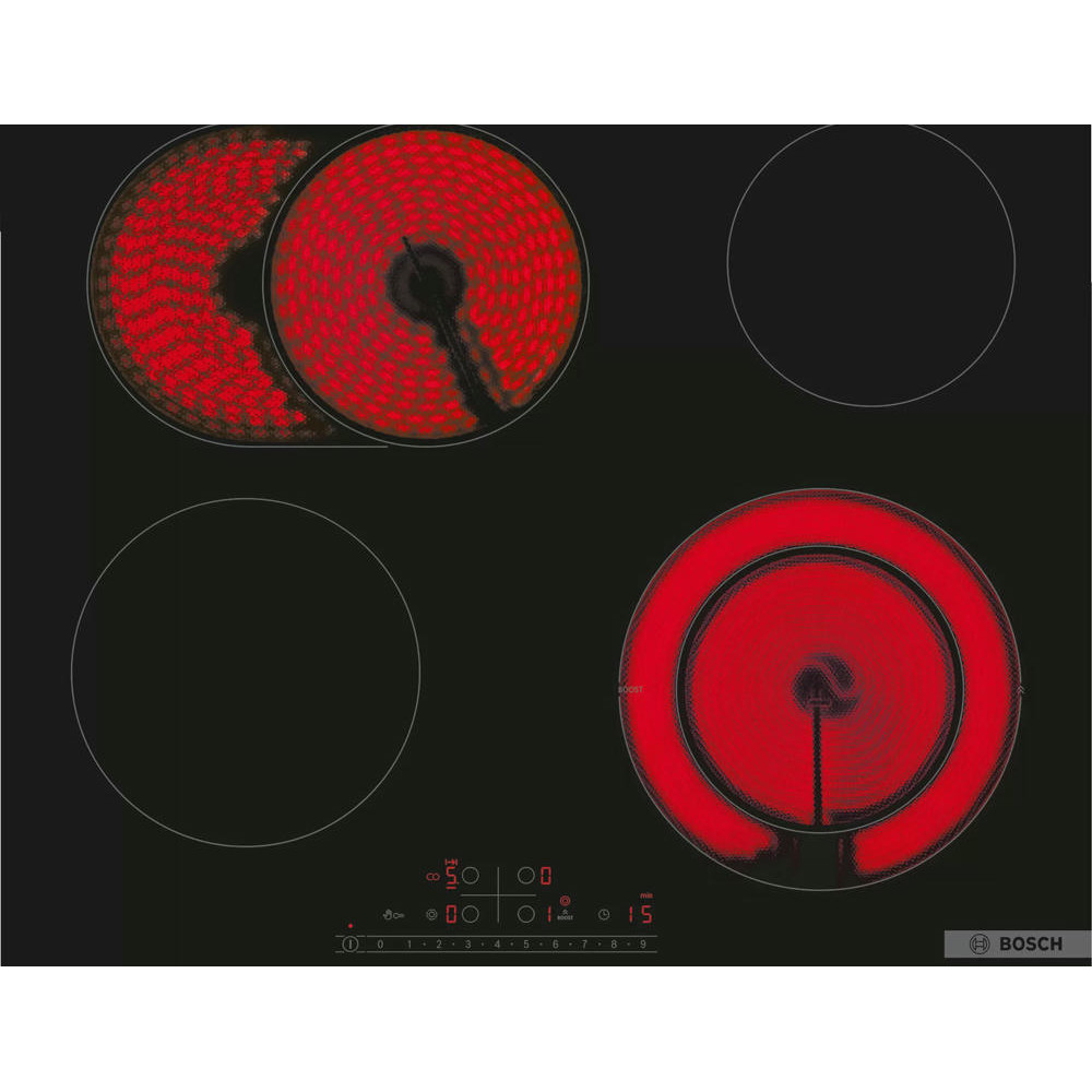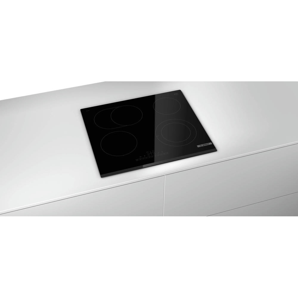 Варочная панель Bosch PKN631FP2E выполнена в классическом черном цвете. Благодаря современному внешнему виду станет отличным украшением любого кухонного пространства. Модель из Serie | 6 относится к электрическому типу. Габариты ниши для встраивания составляют 56x49-50 см. Материал поверхности - стеклокерамика, он отличается повышенной прочностью и устойчивостью к воздействию высоких температур. Четырех конфорок вполне хватает для выполнения ежедневных бытовых задач. Одна из зон нагрева имеет двойной контур. CombiZone позволяет объединить соседние зоны в одну - это удобно при приготовлении еды в посуде продолговатой форме и нестандартного размера. Электронное управление, простое и надежное, осуществляется по средствам сенсорных переключателей системы DirectSelect. Встроенный таймер имеет функцию отключения для каждой конфорки. Гарантия от производителя составляет 12 месяцев.