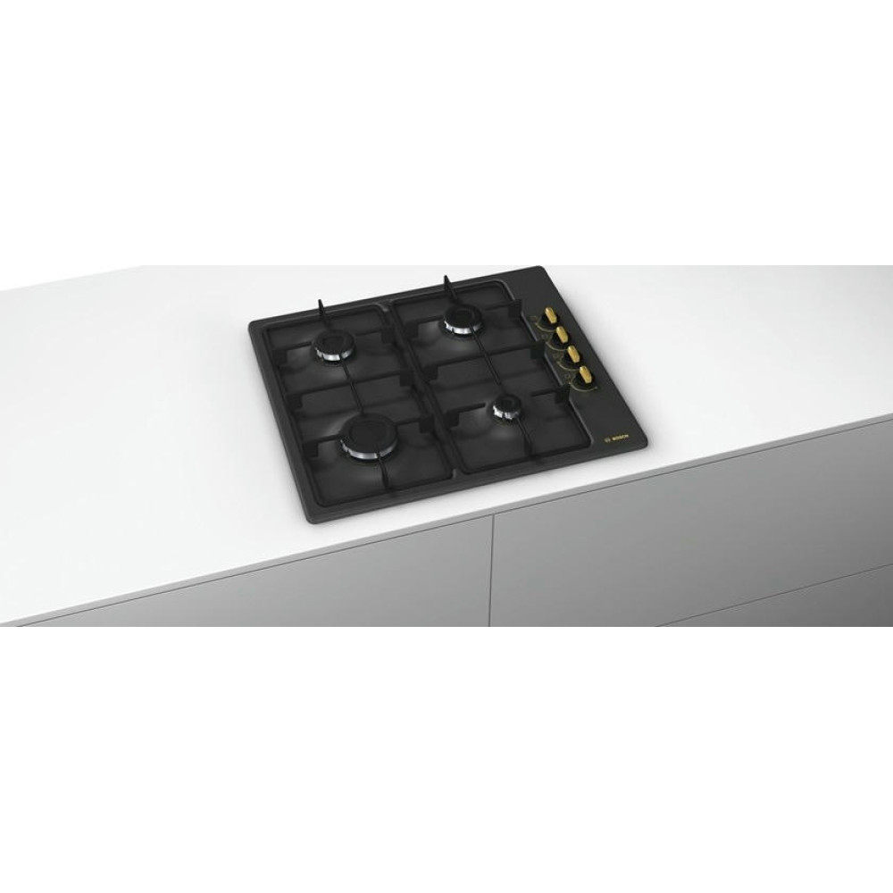 Газовая варочная панель PBP6B3B60 в черном исполнении — практичная и безопасная модель от Bosch. Прибор оснащен термоэлектрической защитой от утечки газа. Система прекращает подачу газа при затухании пламени. На панели располагаются четыре конфорки различной конфигурации и производительности. Автоматический электроподжиг обеспечивает дополнительный комфорт использования. Фурнитура с золотистыми элементами дополняет образ модели. Поворотные регуляторы не перегреваются и обладают плавным ходом для точной настройки мощности.