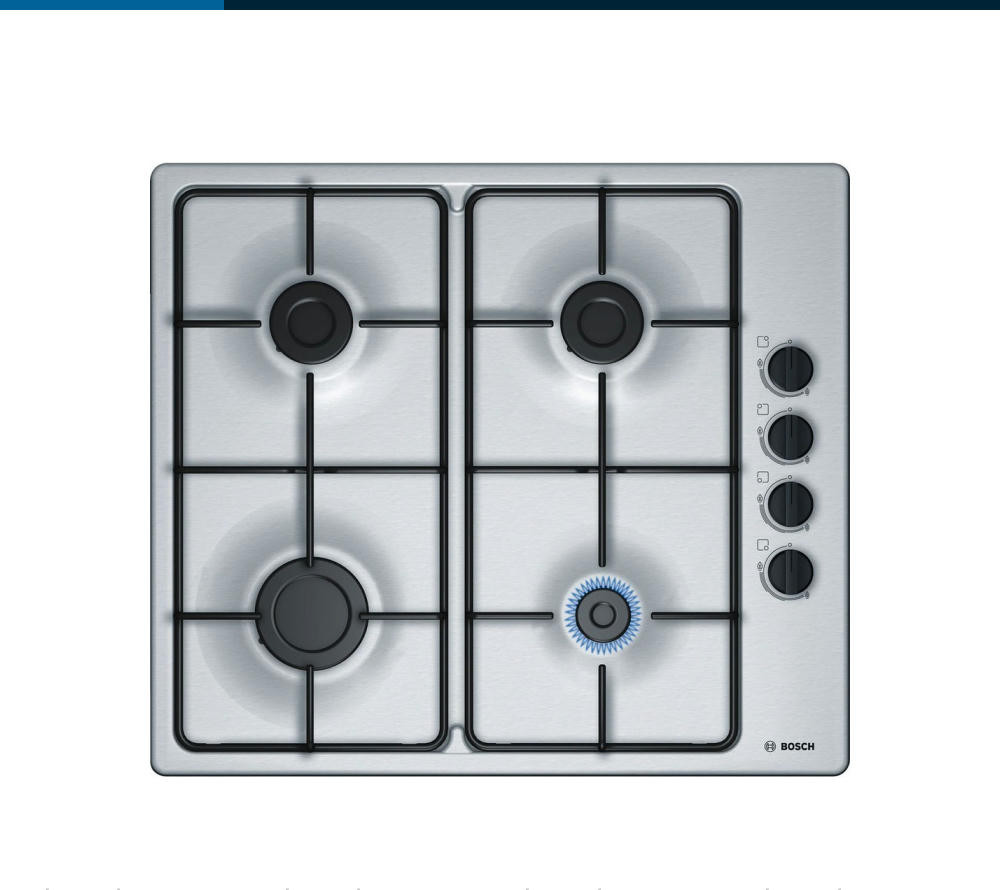 Варочная панель Bosch PBP6B5B80 оснащена поворотными элементами управления, что делает ее использование простым и удобным. Мощность подключения составляет всего 1 Вт, что делает эту модель энергоэффективной. Напряжение составляет 220-240 В, а частота - 50-60 Гц. Заводская настройка на газ составляет 20 мбар.