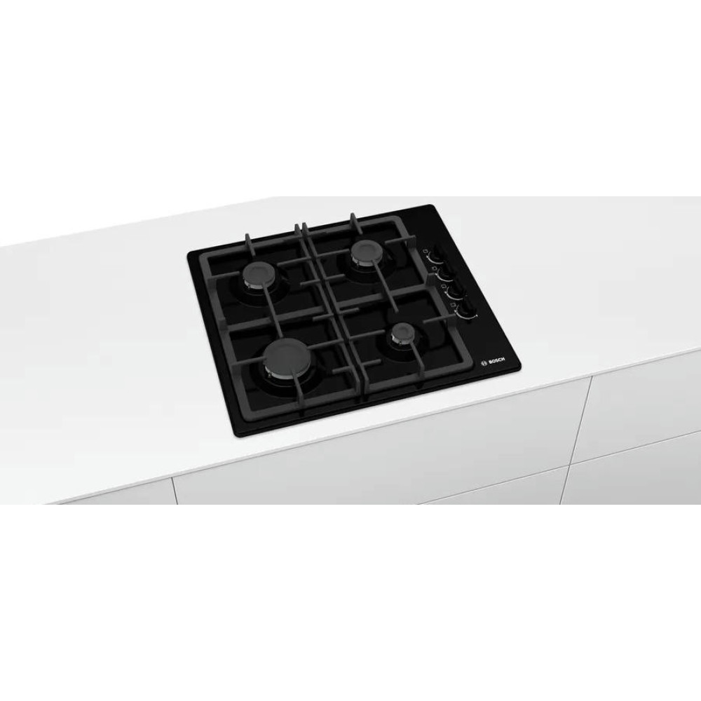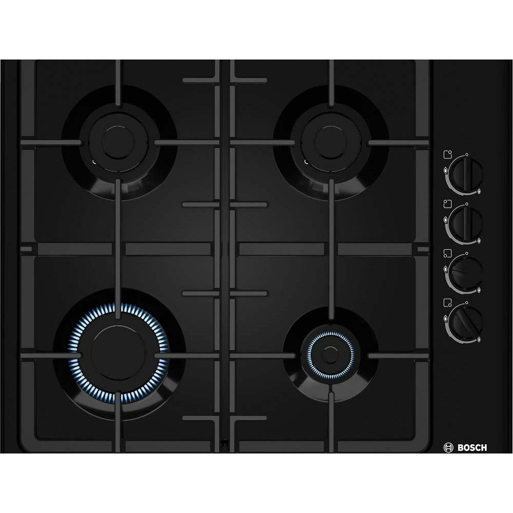 Варочная панель Bosch PBH6C6B92R представлена в элегантном черном дизайне с четырьмя конфорками. Это оборудование производится из высокопрочной эмалированной стали и дополняется прочными чугунными решетками. В сочетании с мощными держателями посуды и металлическими поворотными регуляторами поверхность выглядит профессионально.