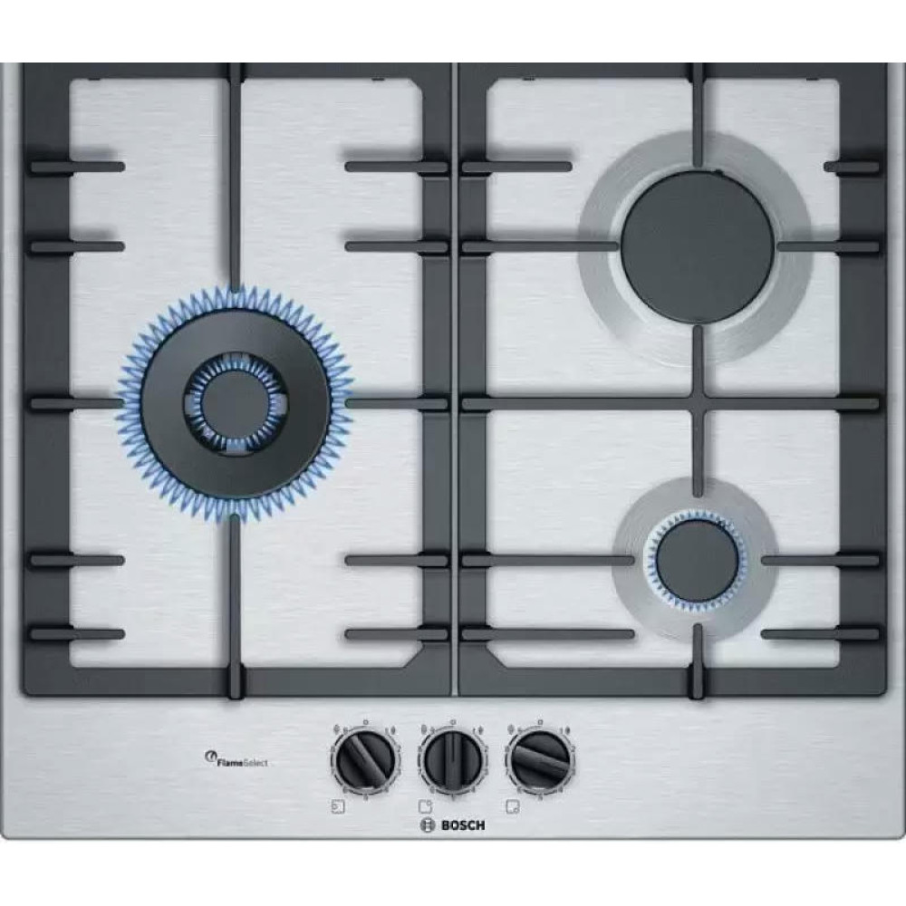 Газовая варочная панель Bosch PCC6A5B90R — это уникальное сочетание функциональности и стильного дизайна. Изготовленная в Евросоюзе, эта модель обладает гарантией качества на 12 месяцев и предназначена для тех, кто ценит комфорт и надежность в быту. Варочная панель выполнена из нержавеющей стали, что обеспечивает ей долгий срок службы и сохранение первоначального вида даже при интенсивном использовании. Прямой край придает модели современный и элегантный вид, который легко впишется в любой интерьер кухни. С шириной 58.2 см и глубиной 52 см, эта панель идеально подойдет для установки в стандартные кухонные гарнитуры. На панели расположены три конфорки различной мощности, что позволяет готовить одновременно несколько блюд, экономя время и энергию. Каждая конфорка оборудована поворотными элементами управления, что обеспечивает простую и удобную настройку температуры. Девять ступеней мощности позволяют выбрать оптимальный режим для приготовления любого блюда. Особое внимание заслуживает наличие WOK-конфорки, которая идеально подходит для приготовления блюд в воке или кастрюле большого объема. Термоэлектрическая защита газ-контроля обеспечивает безопасность использования панели, автоматически блокируя подачу газа в случае погашения пламени. Панель Bosch PCC6A5B90R оснащена автоматическим электроподжигом, что делает процесс включения конфорок быстрым и удобным. Решетки из чугуна обеспечивают стабильное положение посуды во время приготовления пищи, а их прочность и долговечность гарантируют долгий срок службы.