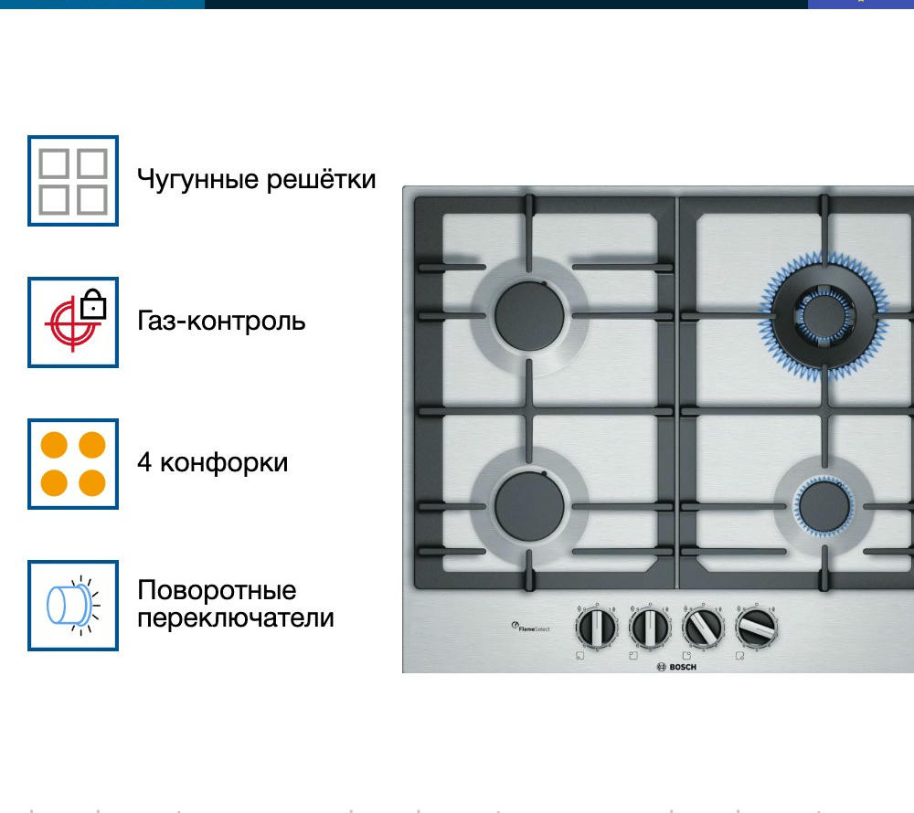 Газовая варочная панель Bosch PCH6A5B90