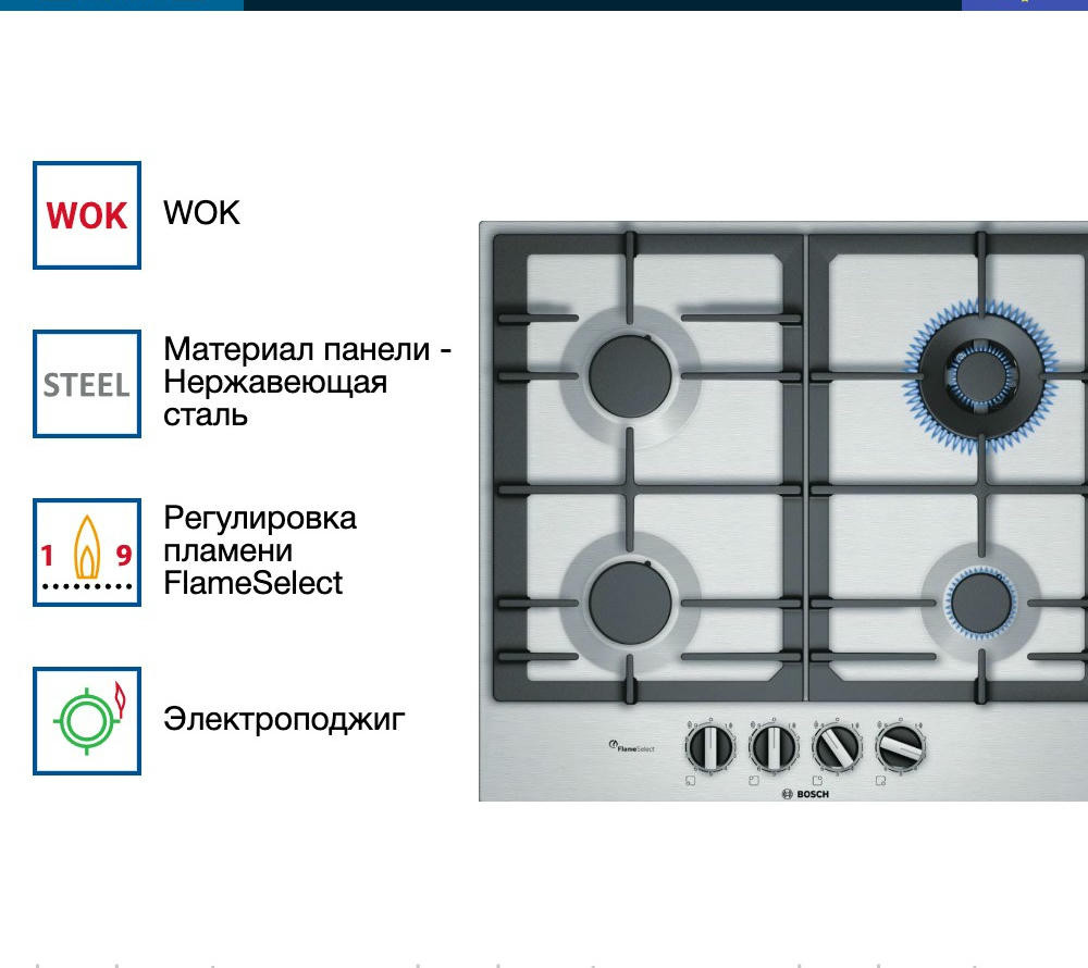 WOK-конфорка обеспечивает быстрый нагрев и экономию времени. Плавный ход регуляторов позволяет точно настраивать мощность пламени.