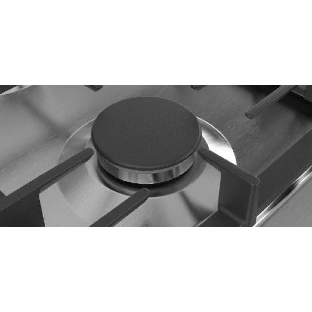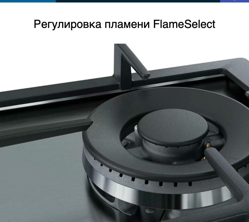 Данная техника обладает функцией регулировкой пламени FlameSelect. С ее помощью вы можете точно регулировать пламя горелки по 9 ступеням мощности. Такая особенность поверхности понравится каждому члену семьи. Кроме этого, процесс приготовления блюд станет еще проще. Теперь вы сможете использовать посуду любого диаметра, в этом помогут 4 мощные конфорки. Мощность одной конфорки 1 кВт, мощность двух 1,75 кВт и последней 3,5 кВт. Одна из которых имеет конструкцию «Двойная корона» и оборудована подставкой под вок-сковородки. Эта экспресс-конфорка она имеет два кольца пламени и предназначена для наиболее интенсивного нагревания. С помощью нее вы сможете создать атмосферу ресторана на домашней кухне и готовить блюда азиатской кухни в специальных сковородах, использовать казан и другую посуду с толстыми стенками.